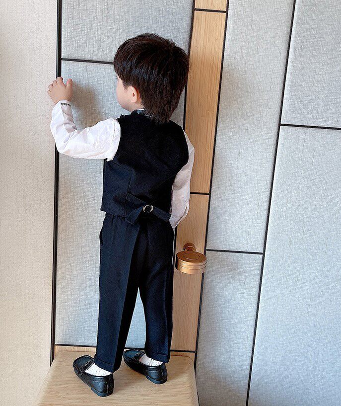 - Осенний черный комплект, жилет, штаны, рубашка, 3 шт