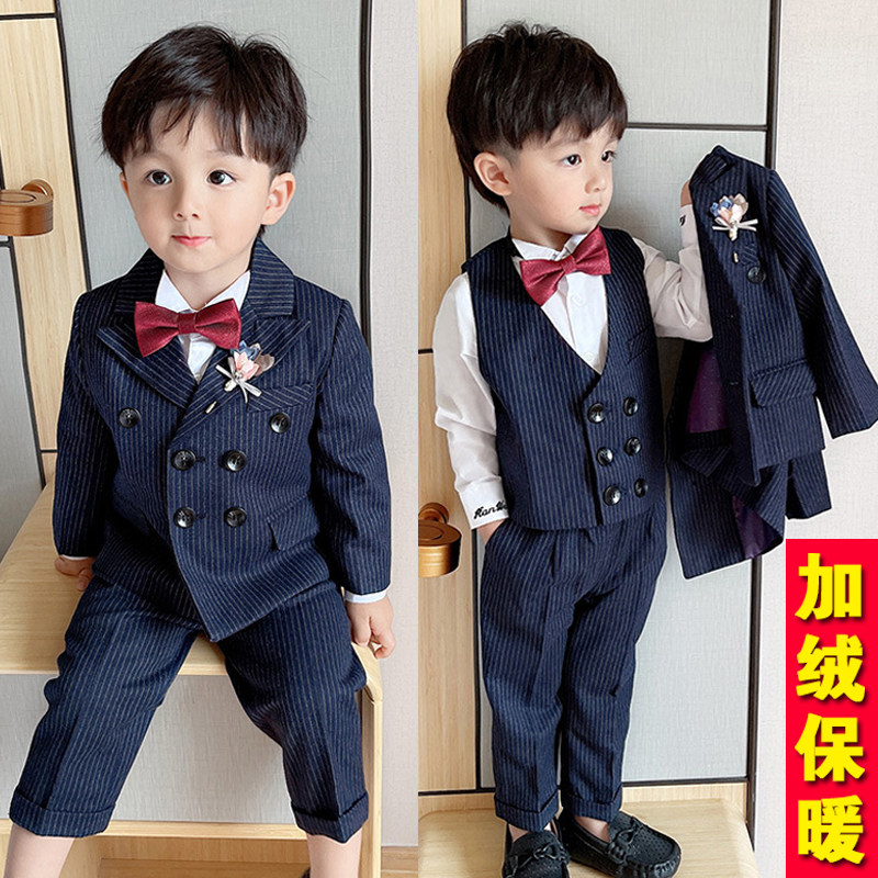Детский утепленный классический костюм для мальчиков, детское платье девочки цветочницы, комплект, наряд на выход, в западном стиле, 3 предмета