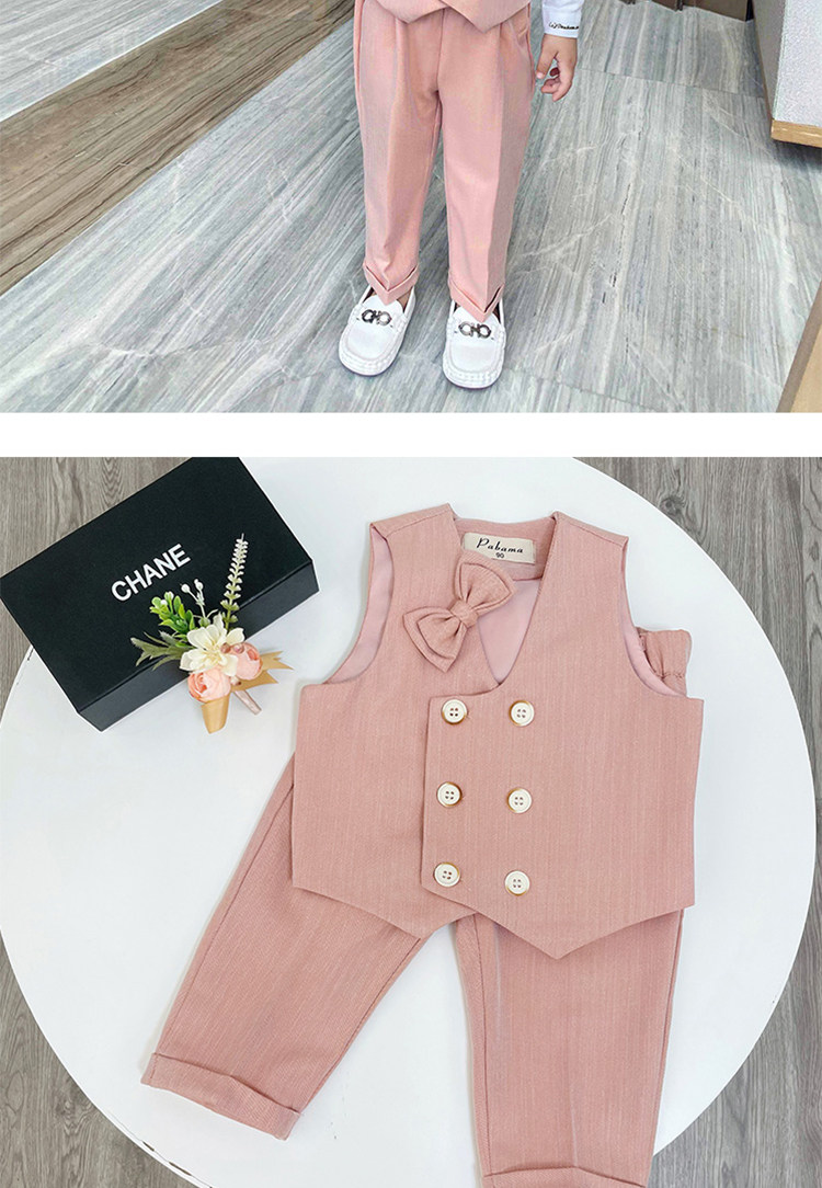 - Розовый костюм, штаны, жилет
