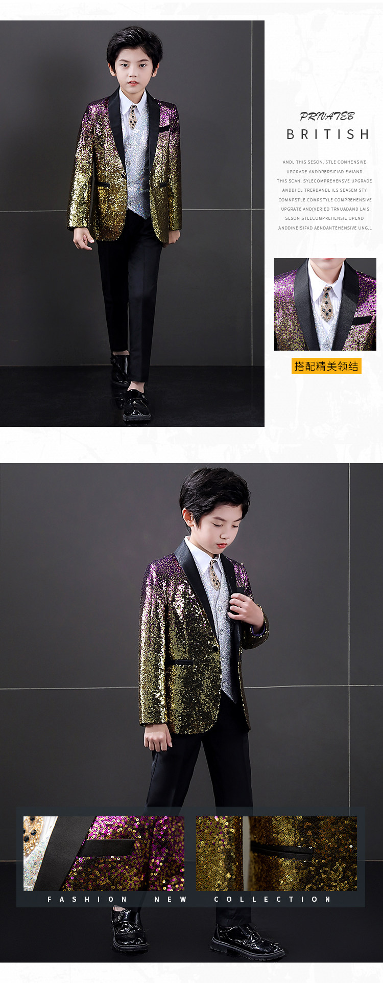Детский комплект для мальчиков, платье, пиджак классического кроя, пианино, наряд для музыкальных выступлений, в британском стиле, для подиума