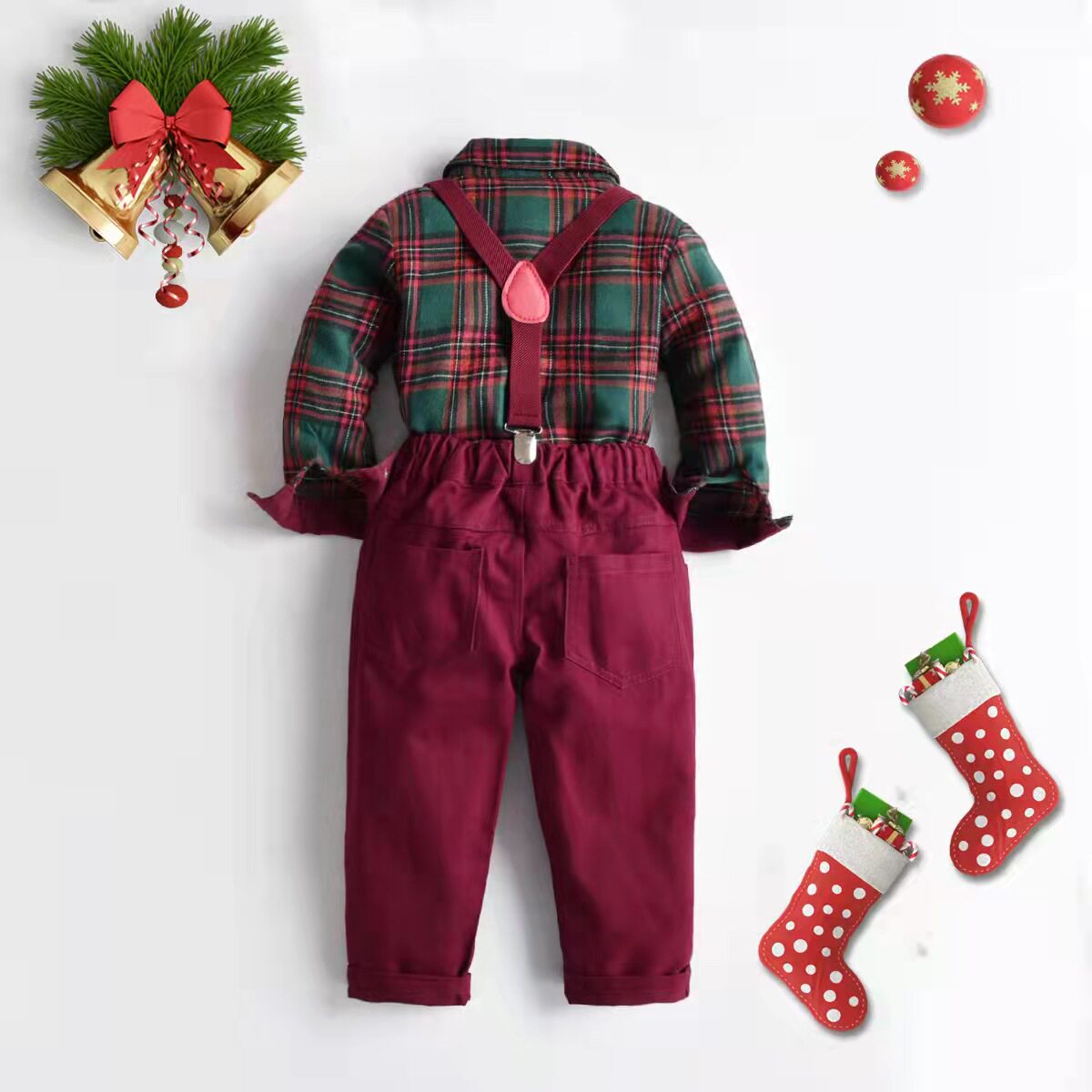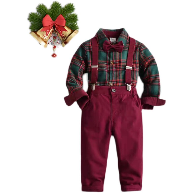 Трендовый детский комплект для мальчиков, галстук-бабочка, рубашка, комбинезон
