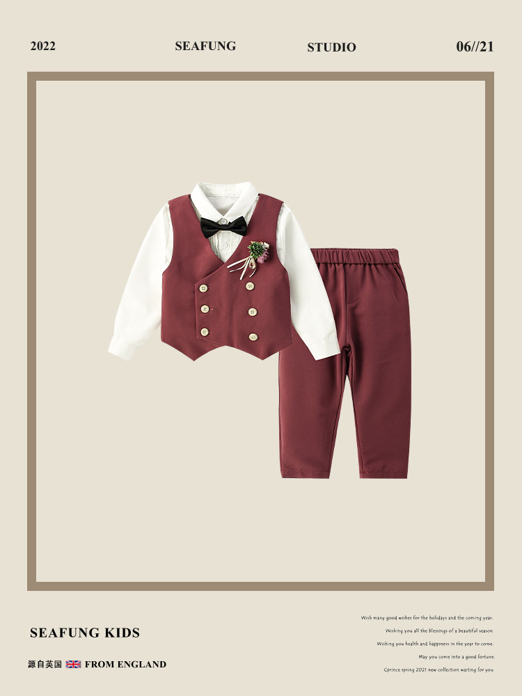 Комплект для мальчиков, детский жилет, пиджак классического кроя, детское платье, детская одежда, 3 предмета