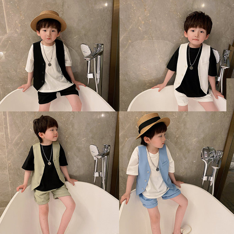 Классический костюм для мальчиков, детское платье, жилет, в корейском стиле, в западном стиле, для подиума