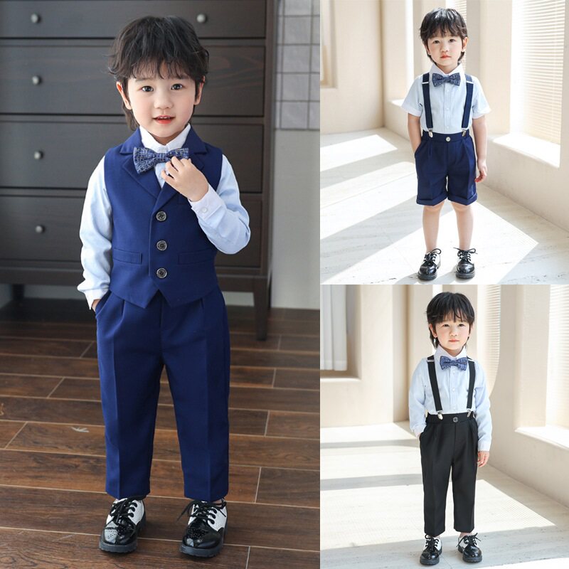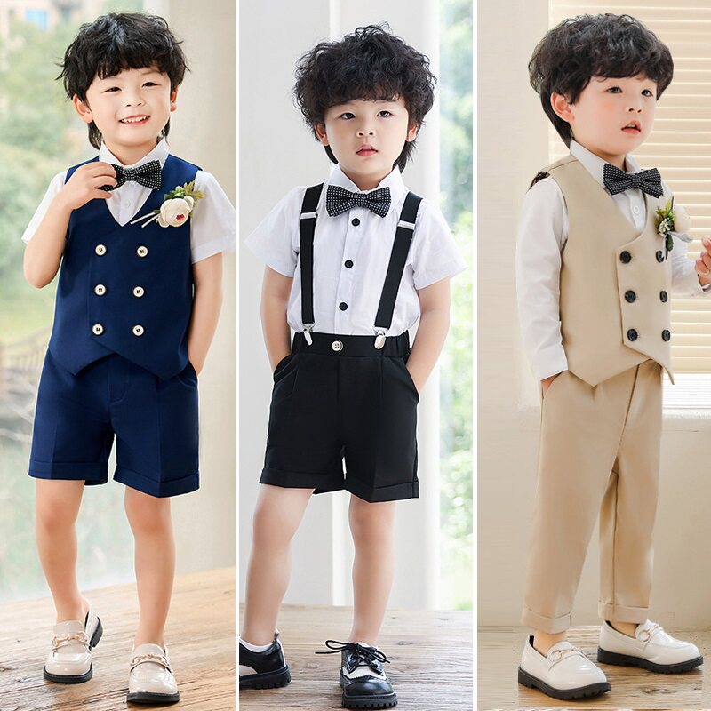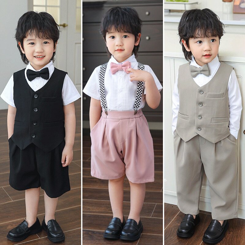 Детский костюм, жилет, рубашка, комплект для мальчиков, платье, подарок на день рождения, в британском стиле, в западном стиле