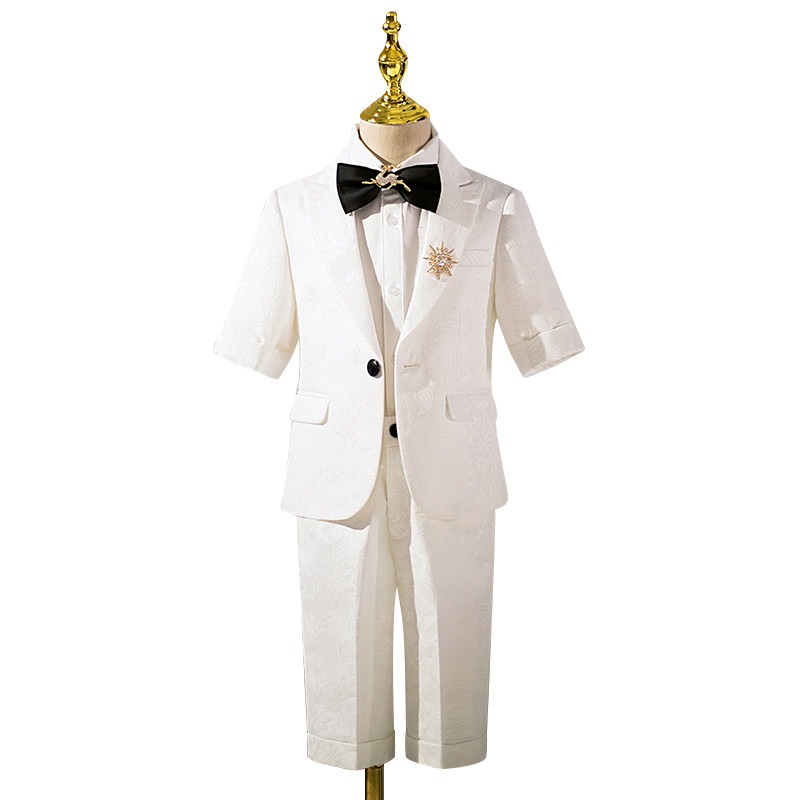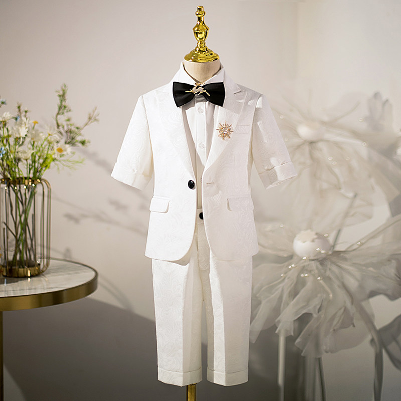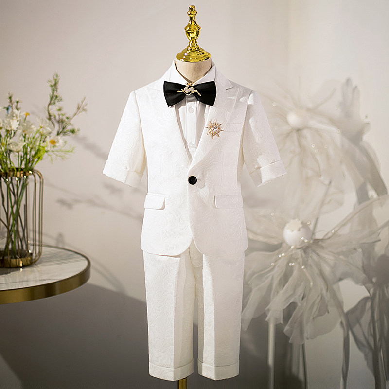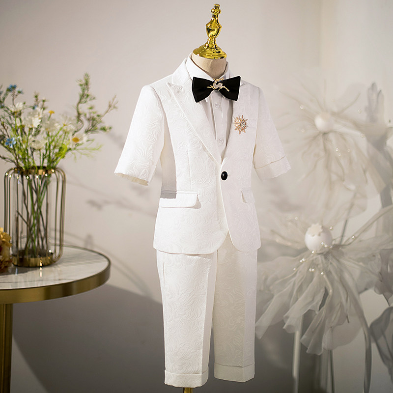 Белый детский пиджак классического кроя для мальчиков, платье, пианино, наряд для музыкальных выступлений, короткий рукав