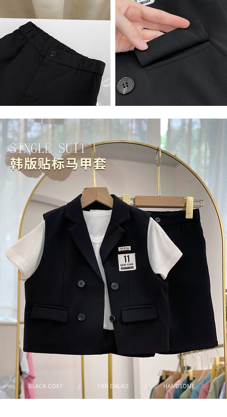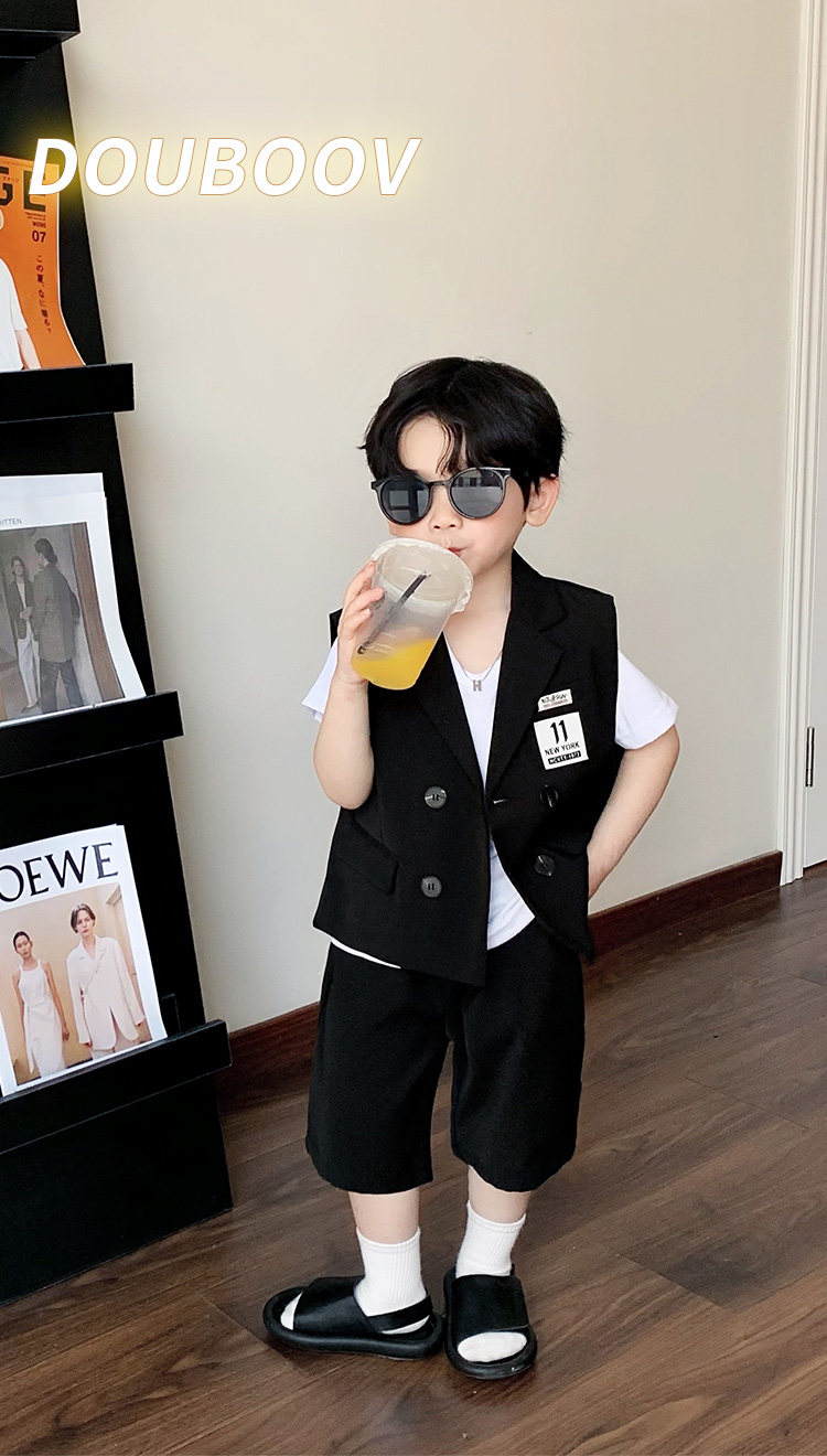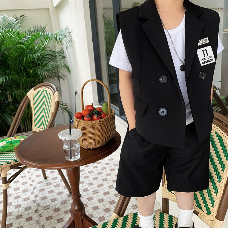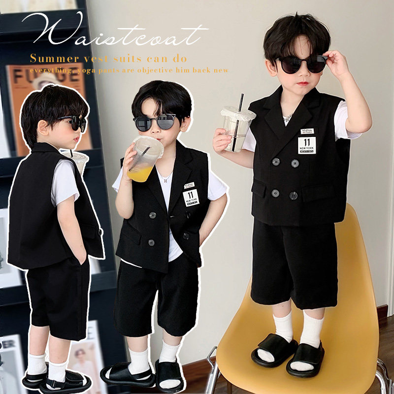 Летний комплект для мальчиков, детский жилет, платье, костюм, в корейском стиле, для подиума