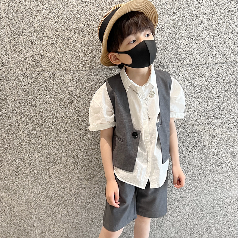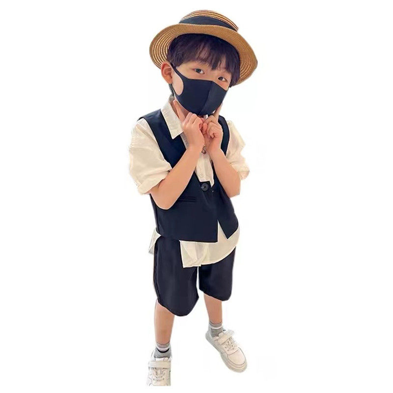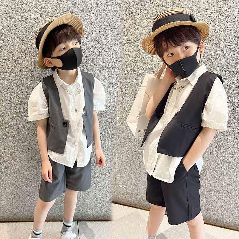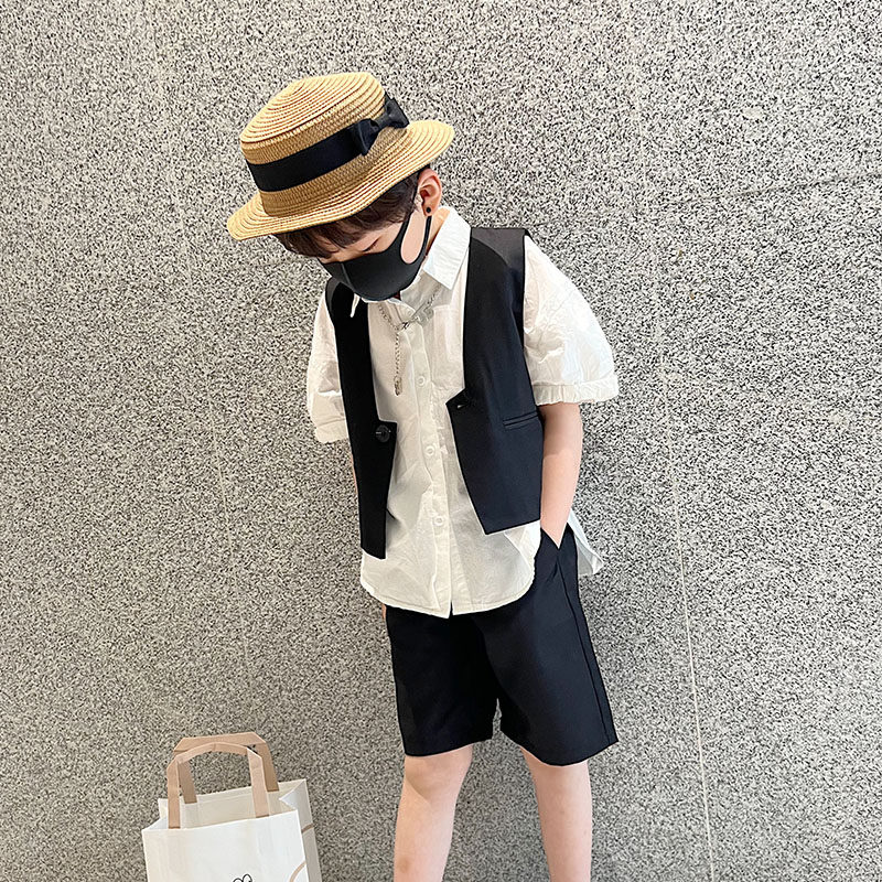 Детский летний классический костюм для мальчиков, рубашка, жилет, комплект, 3 предмета