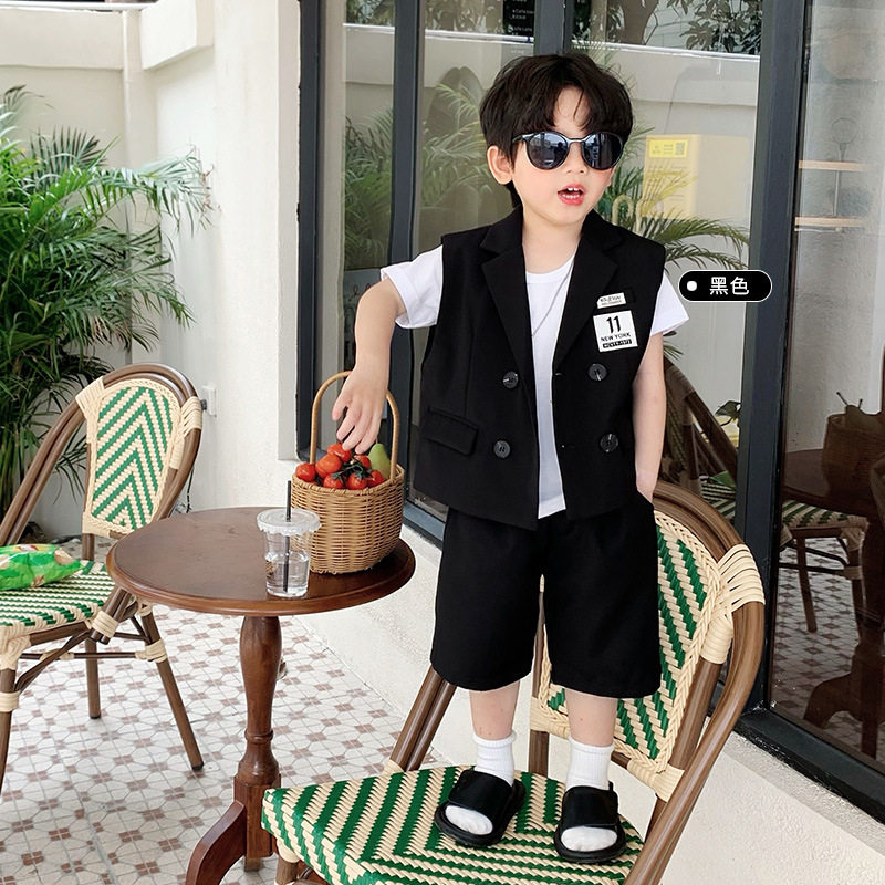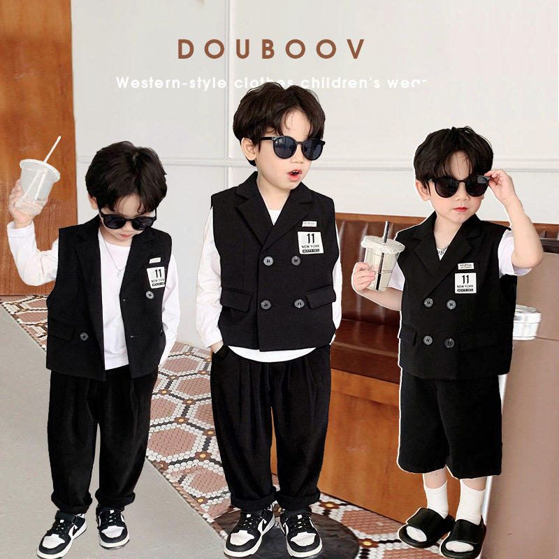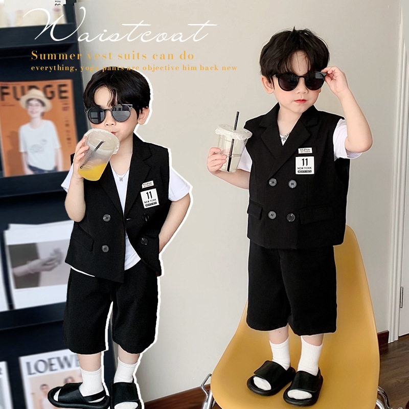 Пиджак классического кроя для мальчиков, жилет, летний комплект, детское платье, костюм, в корейском стиле, для подиума