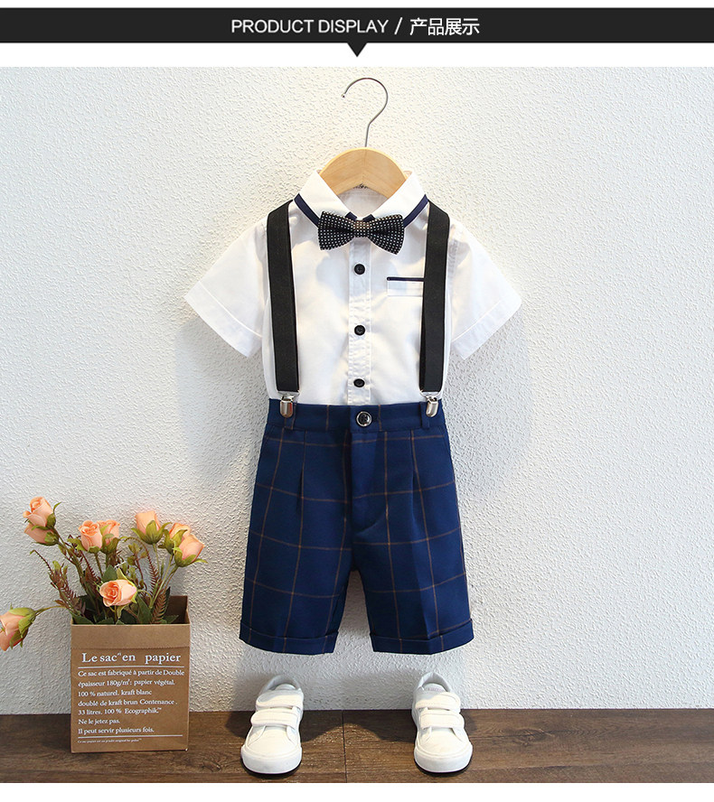 Детский классический костюм для мальчиков, платье, летняя одежда, короткий рукав, в британском стиле