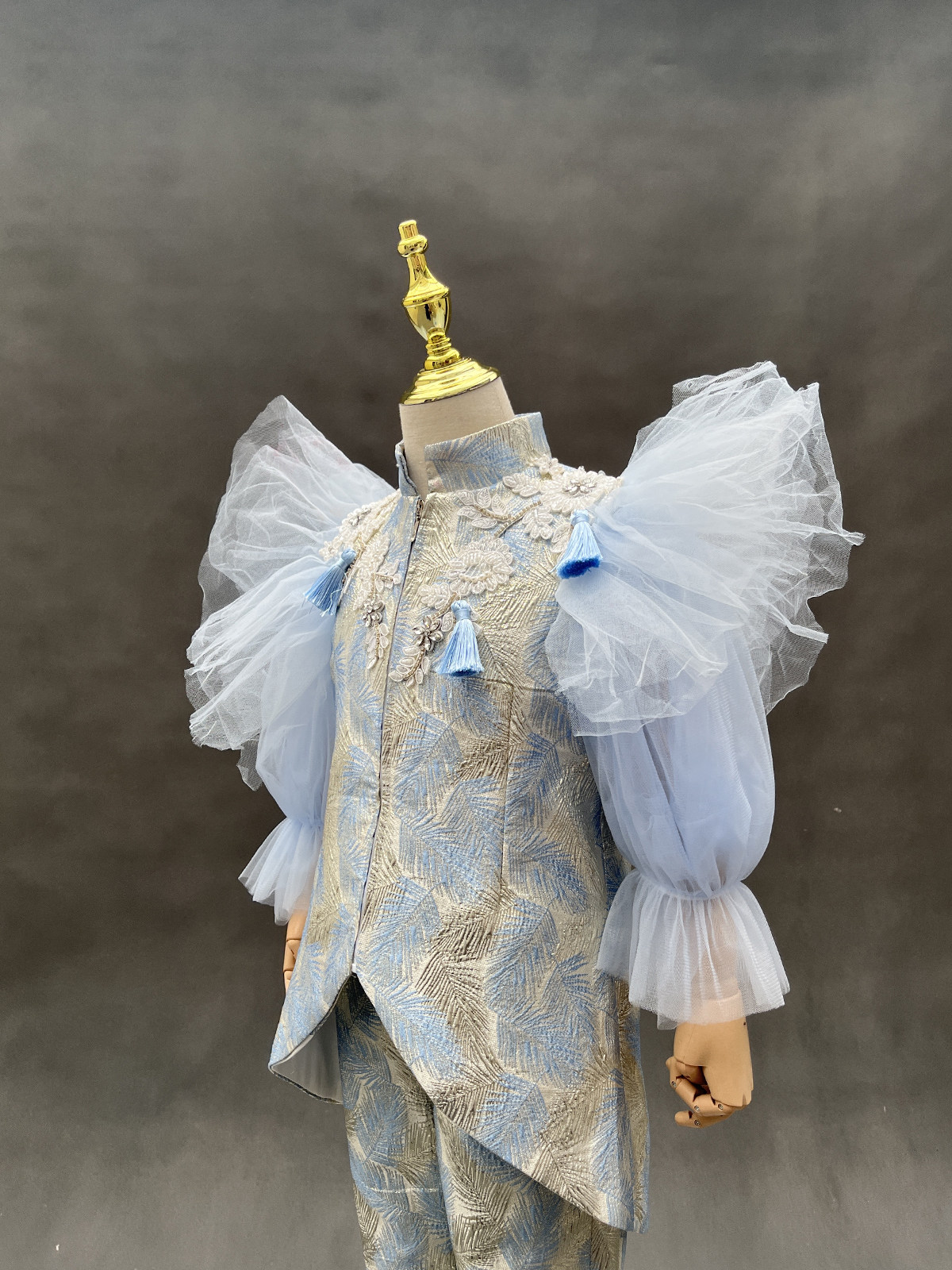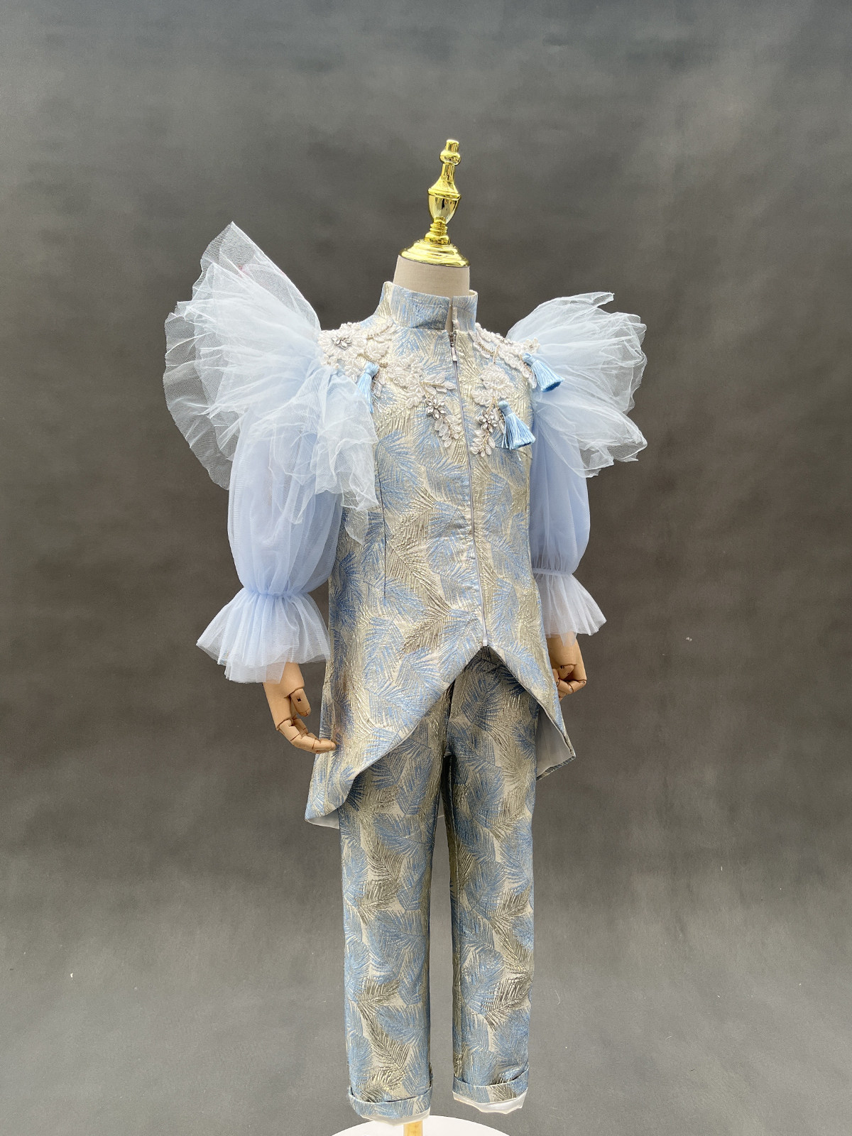 Синий манекен головы для мальчиков, пианино, наряд для музыкальных выступлений, костюм