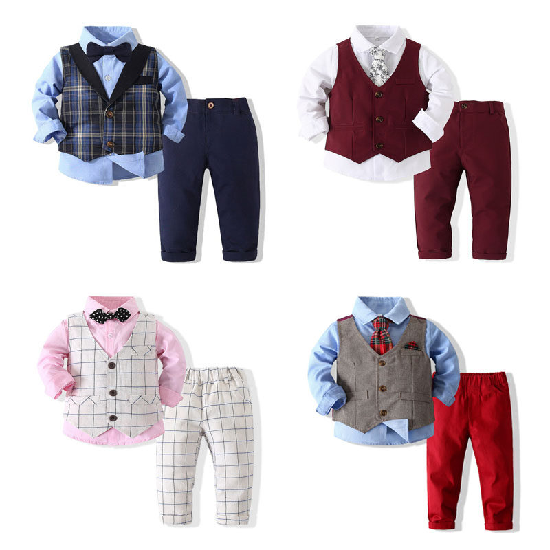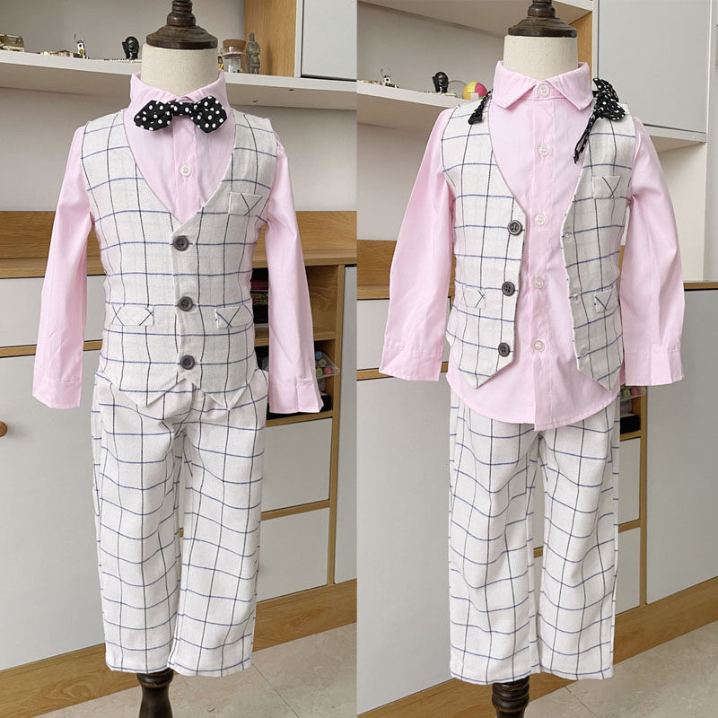 Осенний костюм для мальчиков, студенческая юбка в складку, детский комплект, жилет, коллекция 2022, в британском стиле, 3 предмета