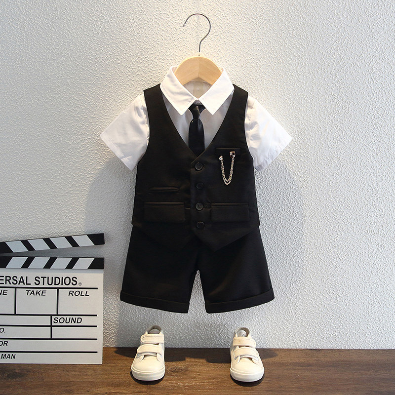 Костюм мальчика цветочника, летний классический костюм, детское платье для отдыха, детский жилет, в корейском стиле, наряд на выход, короткий рукав