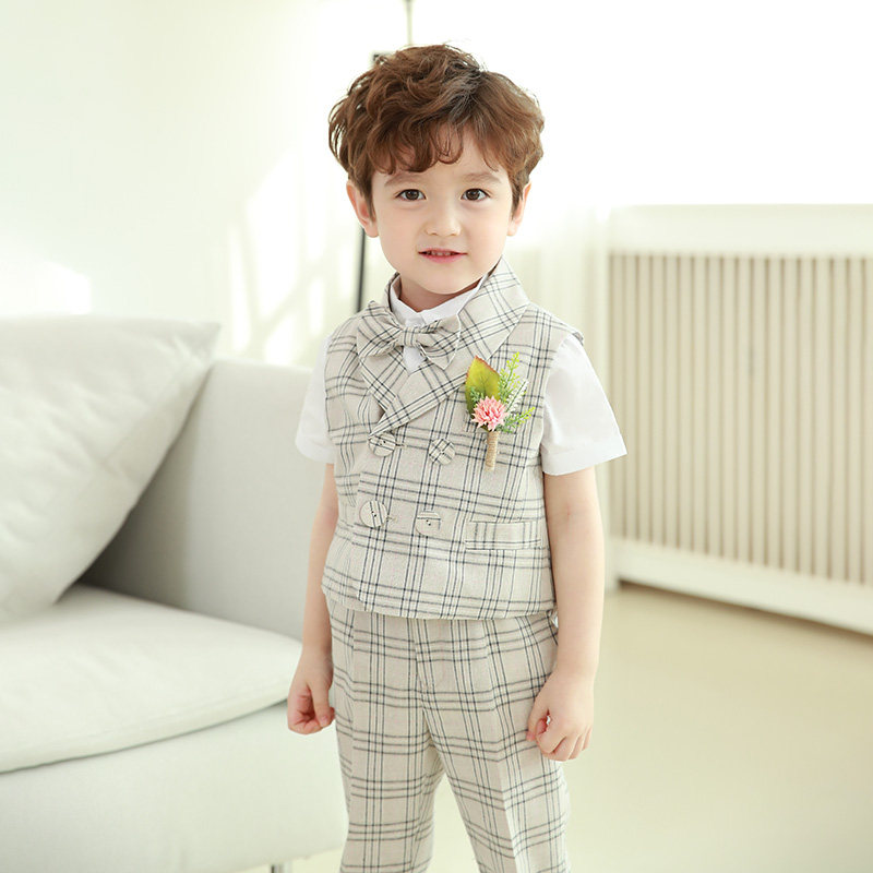 Детский классический костюм, комплект для мальчиков, платье, костюм мальчика цветочника, жилет, 3 предмета, в британском стиле