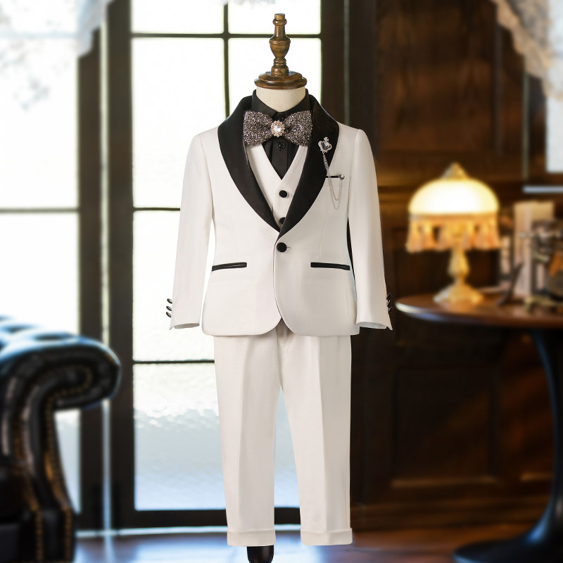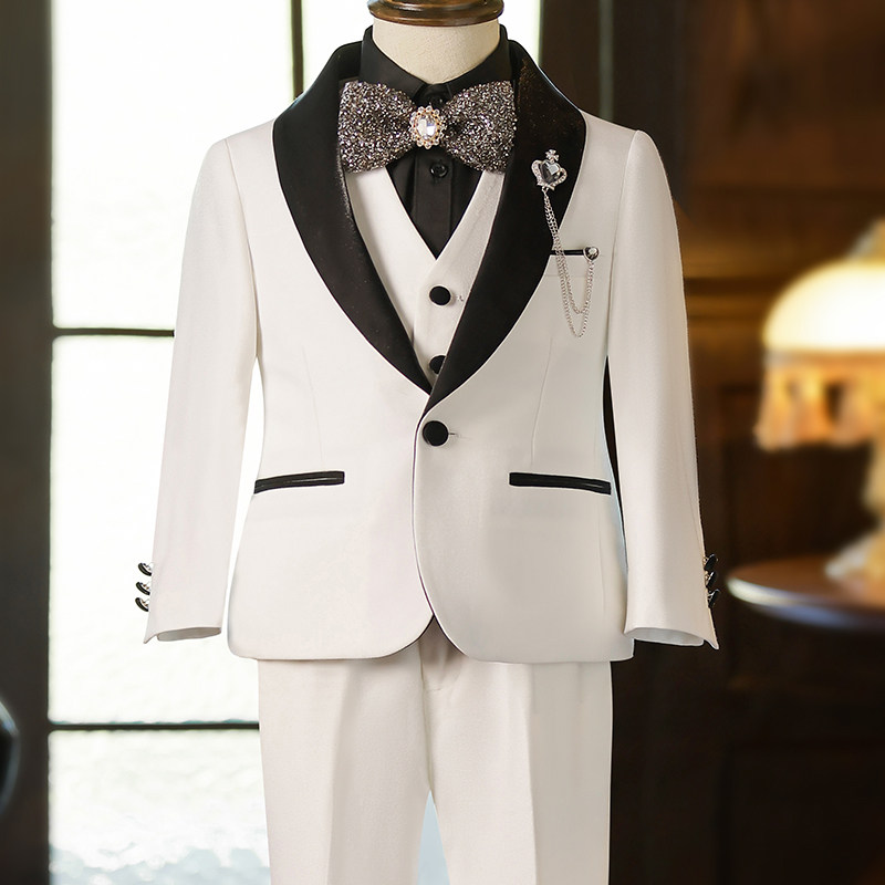 Детский классический костюм, белый костюм мальчика цветочника, пианино, наряд для музыкальных выступлений, подходит для подростков