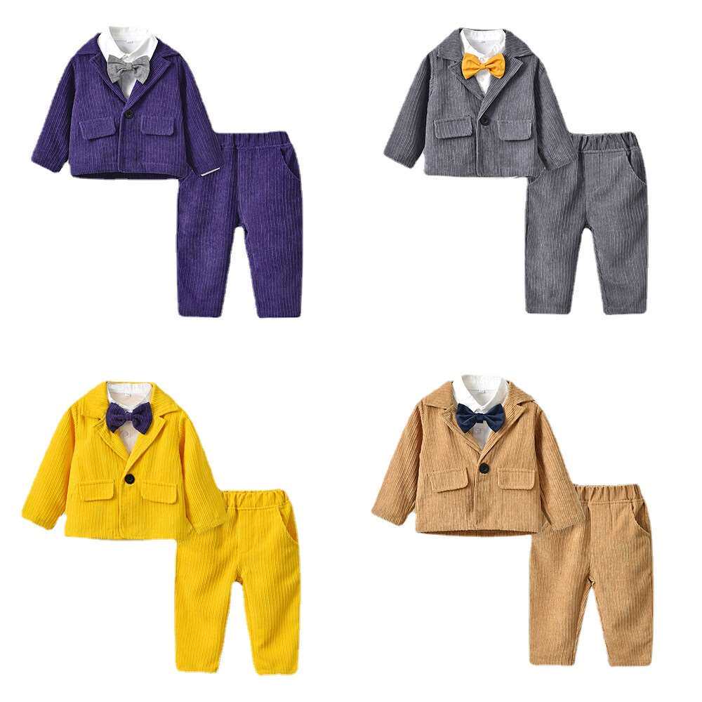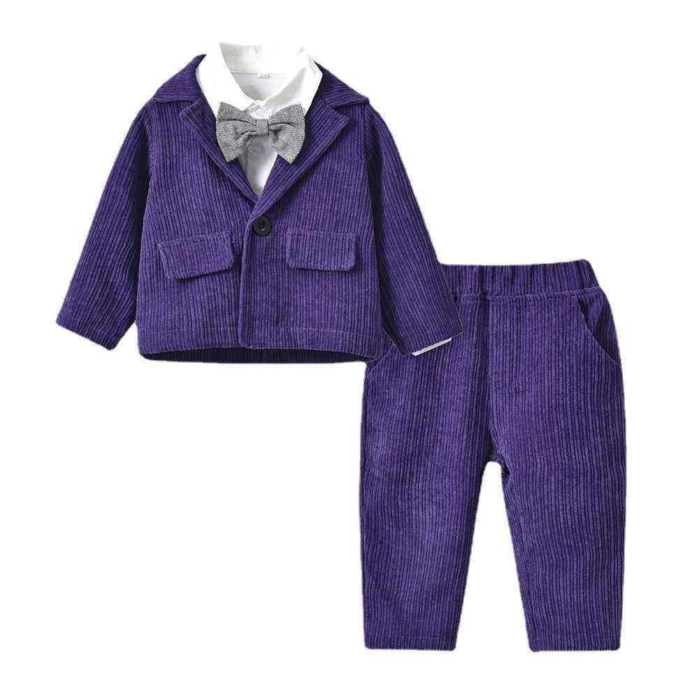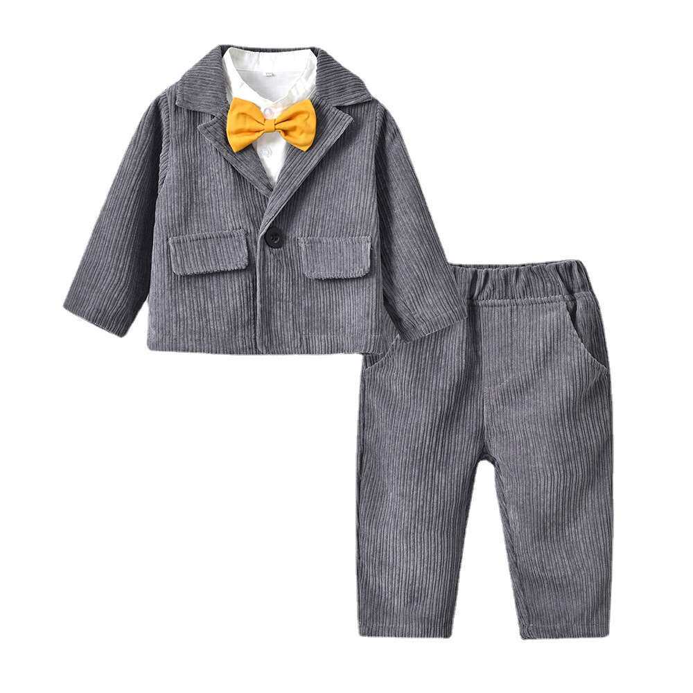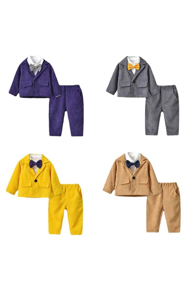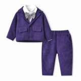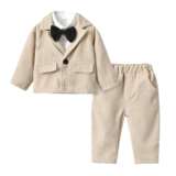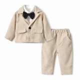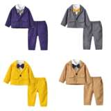 [韩版童装 秋季西装长袖外套男领结衬衫童长裤三件套 2021新款套装]