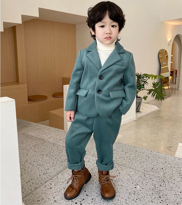 Костюм мальчика цветочника, осенний демисезонный классический костюм, детские джинсы с начесом, комплект для мальчиков, в корейском стиле