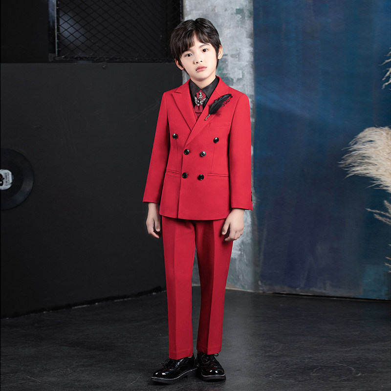 Костюм мальчика цветочника, классический костюм, красное детское элегантное элитное платье, демисезонный наряд для музыкальных выступлений