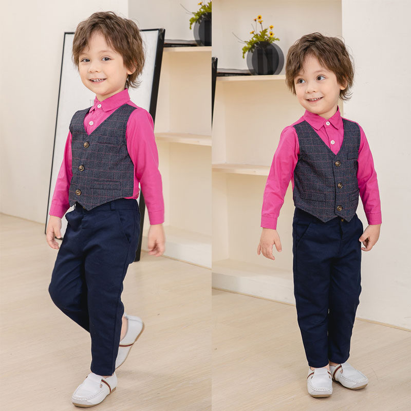 Осенний жилет, пиджак классического кроя для мальчиков, лонгслив, комплект, 2023, в корейском стиле