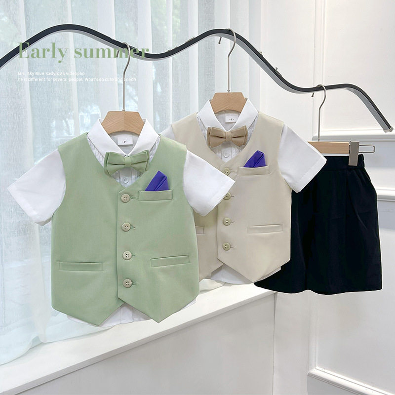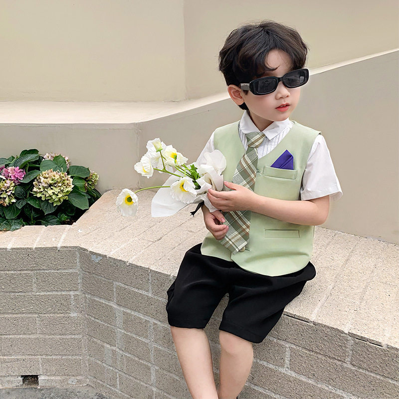 Костюм мальчика цветочника, летний классический костюм, детское платье, жилет для мальчиков, подарок на день рождения