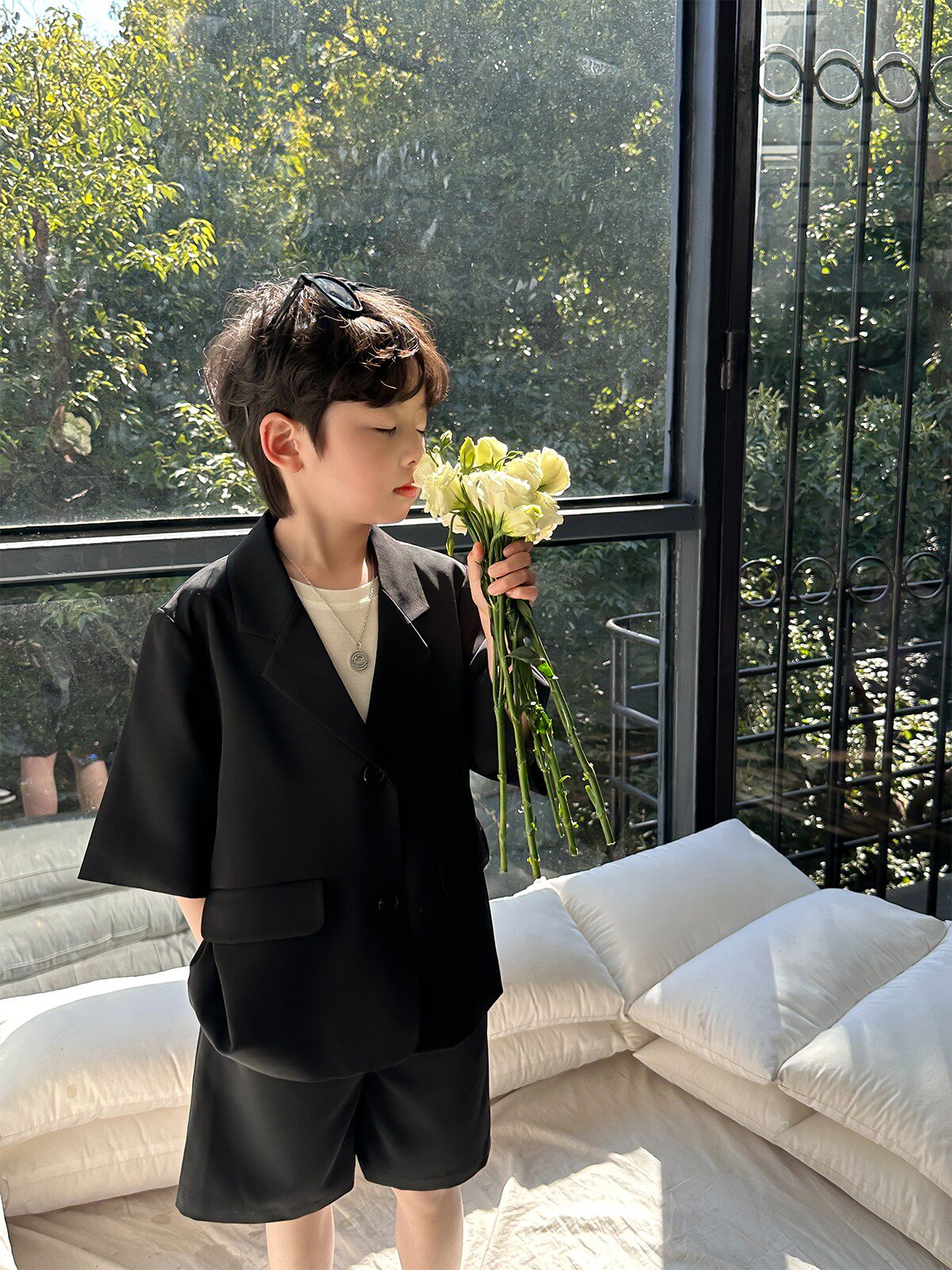 Летний костюм для мальчиков, комплект, детские дышащие шорты, оверсайз, в корейском стиле, 3 предмета