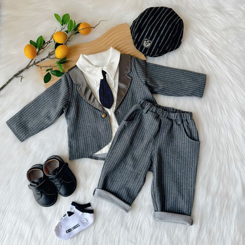 Платье для мальчиков, детская одежда для мальчика, осенний пиджак классического кроя, комплект, наряд на выход, в западном стиле, в британском стиле, подарок на день рождения