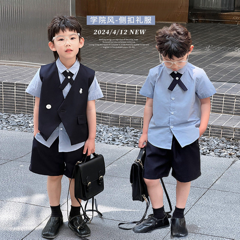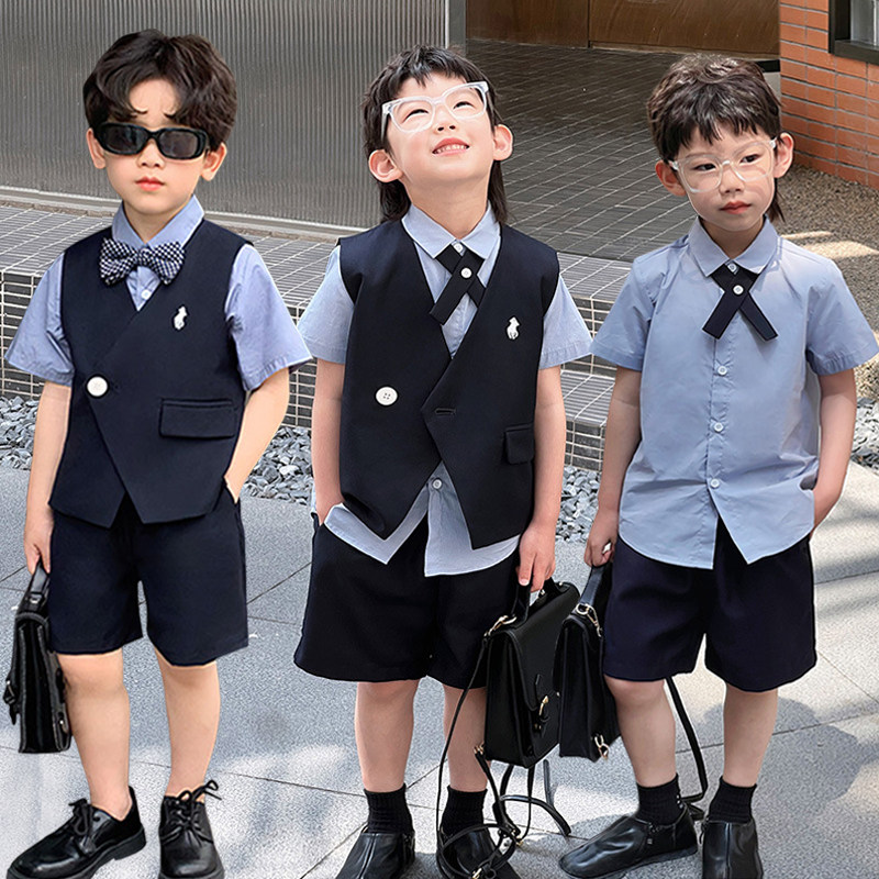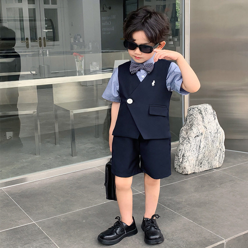 Детское летнее платье, пиджак классического кроя для мальчиков, жилет, комплект, элитный костюм, подарок на день рождения