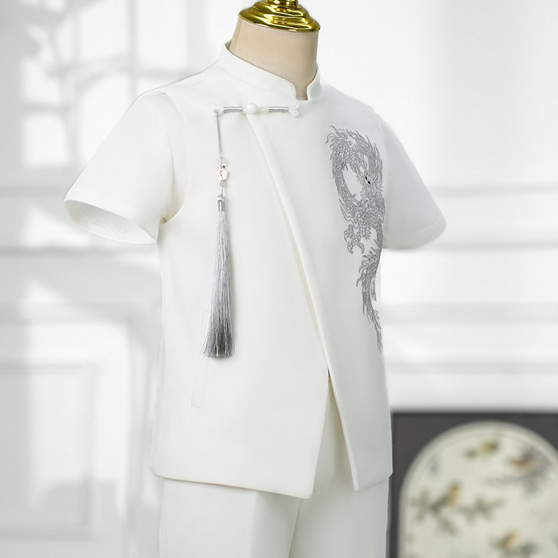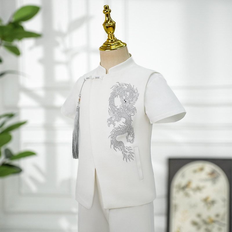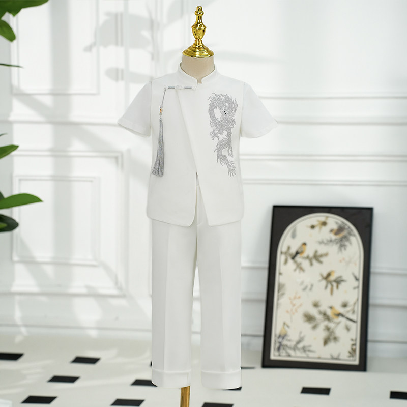 Детский летний классический костюм, белый костюм мальчика цветочника, пианино, наряд для музыкальных выступлений, китайский стиль, подарок на день рождения
