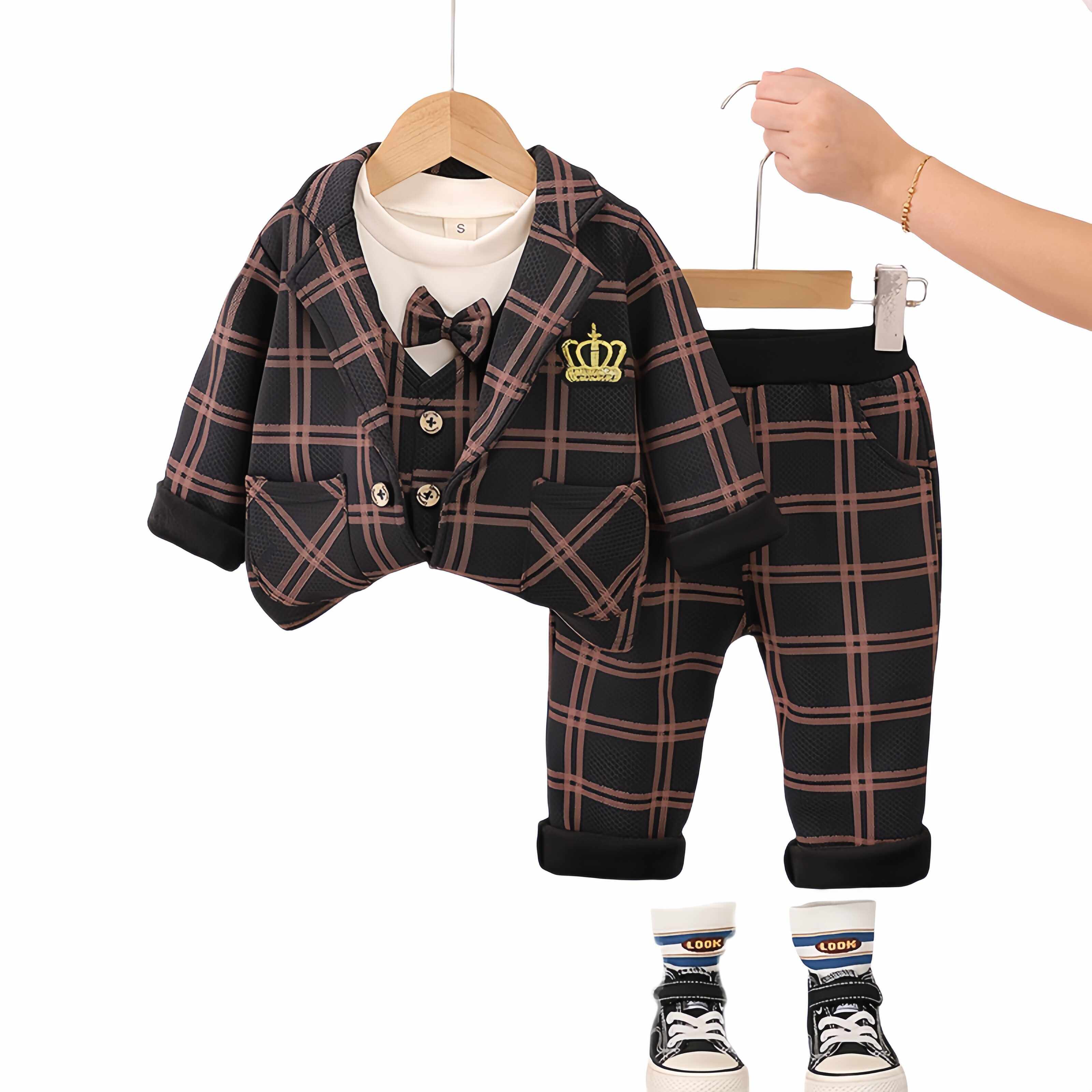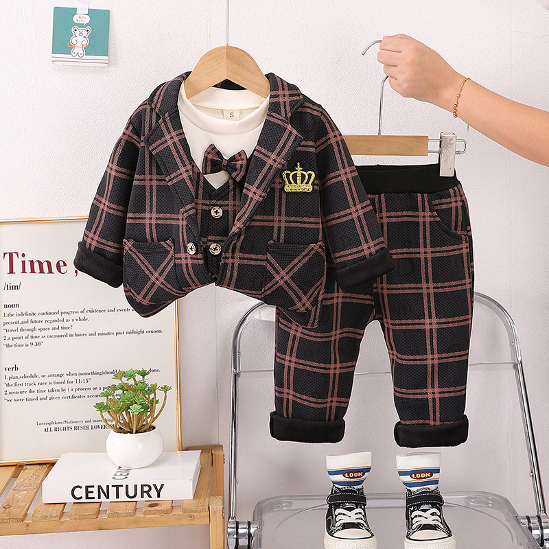 Флисовый костюм для мальчиков, комплект, детский пуховик, детское платье, 3 предмета, 1 лет