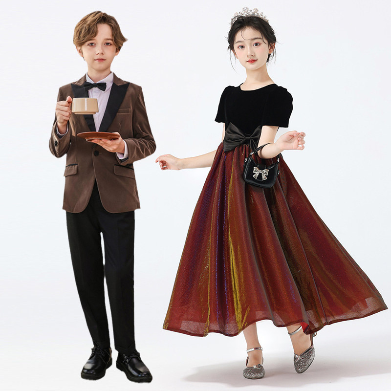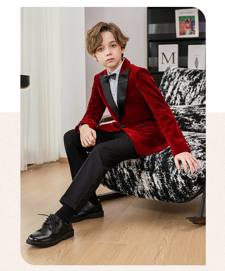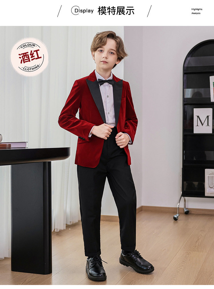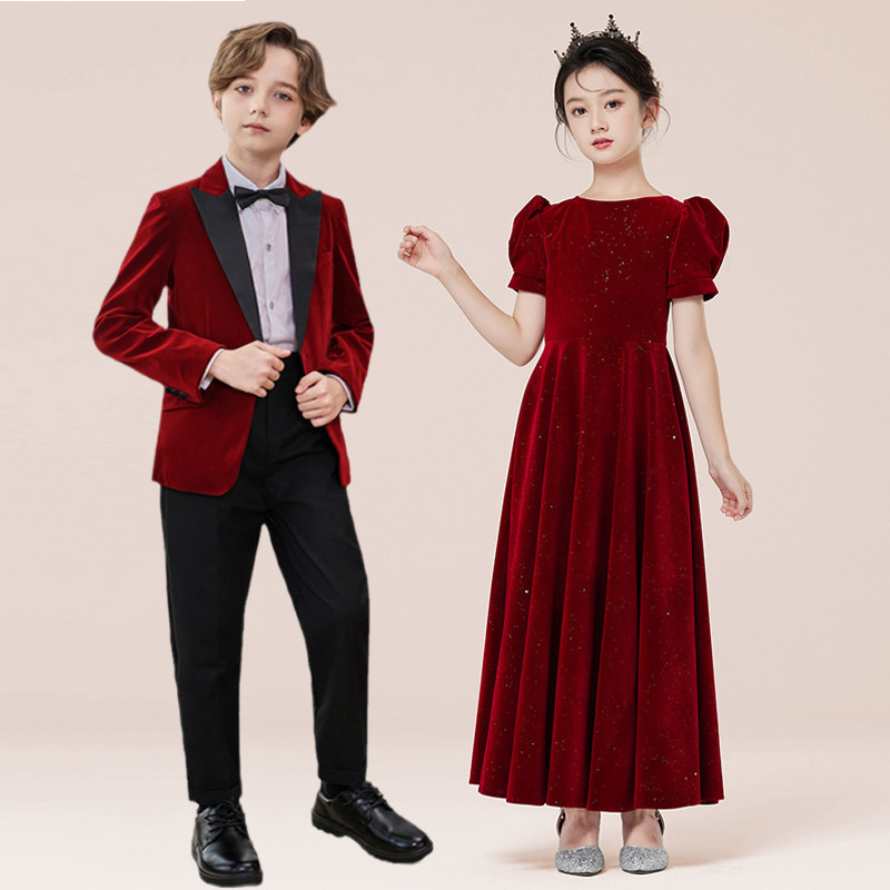 Костюм мальчика цветочника, детский бархатный классический костюм, красный лонгслив, наряд маленькой принцессы, в западном стиле