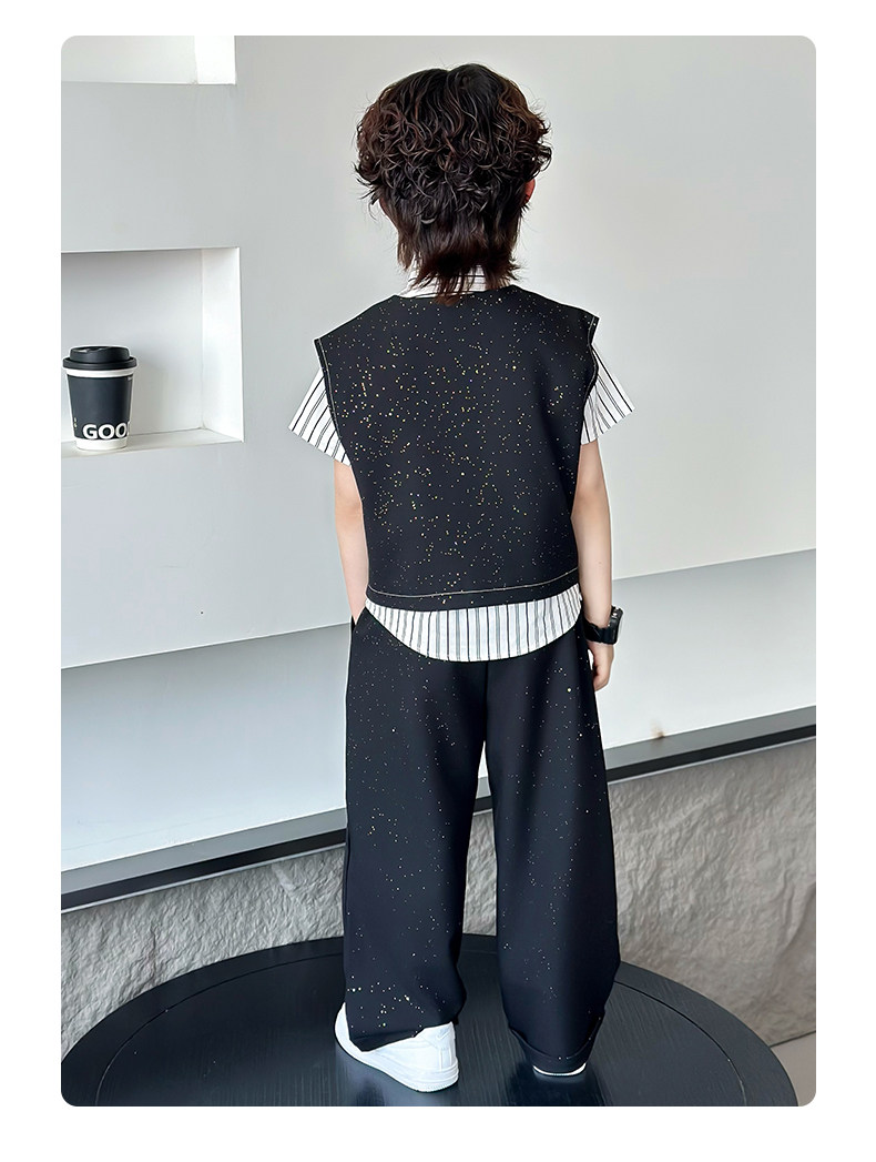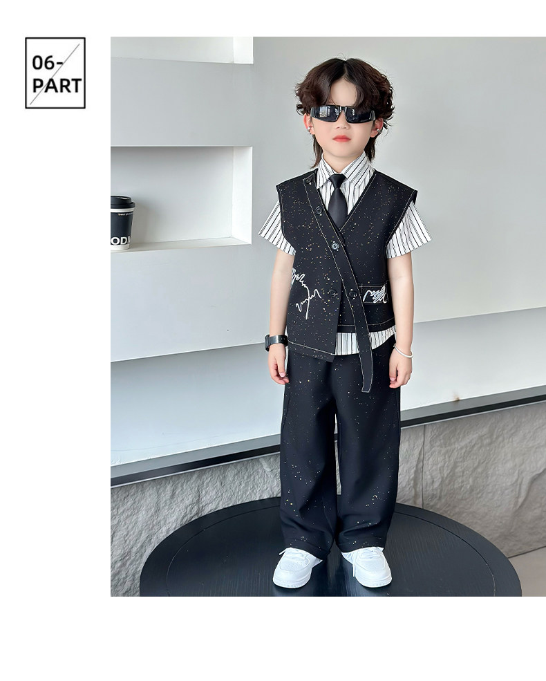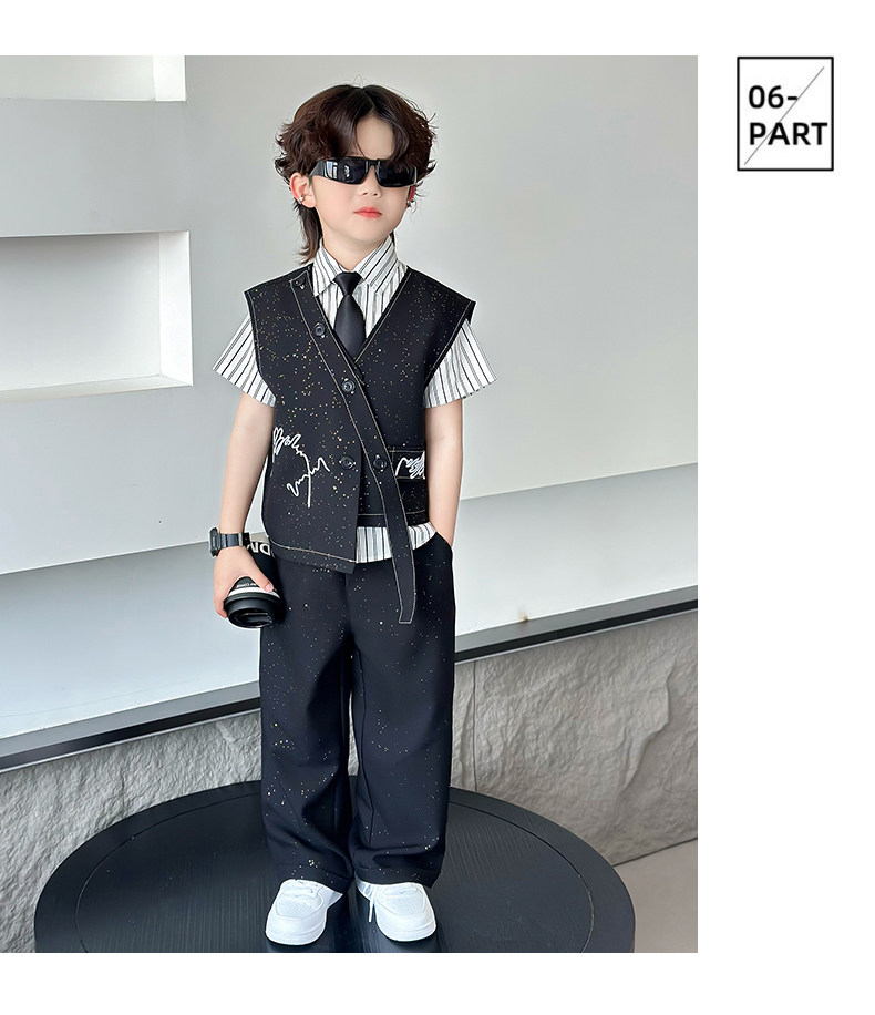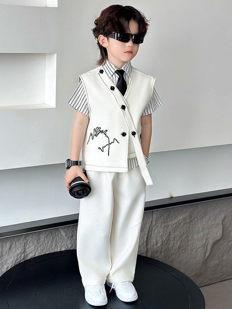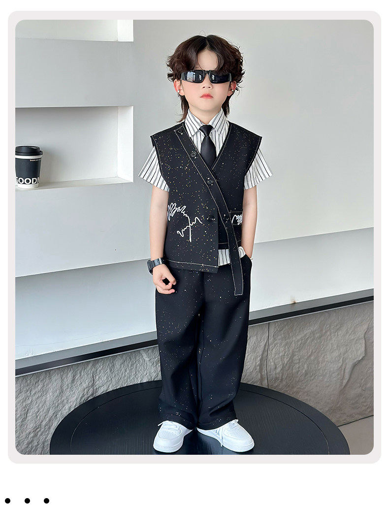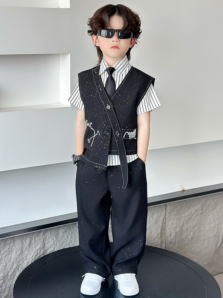 Летний блестящий детский комплект для мальчиков, пианино, наряд для музыкальных выступлений, костюм