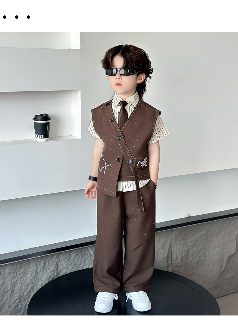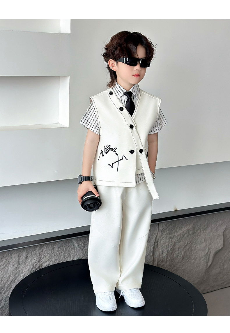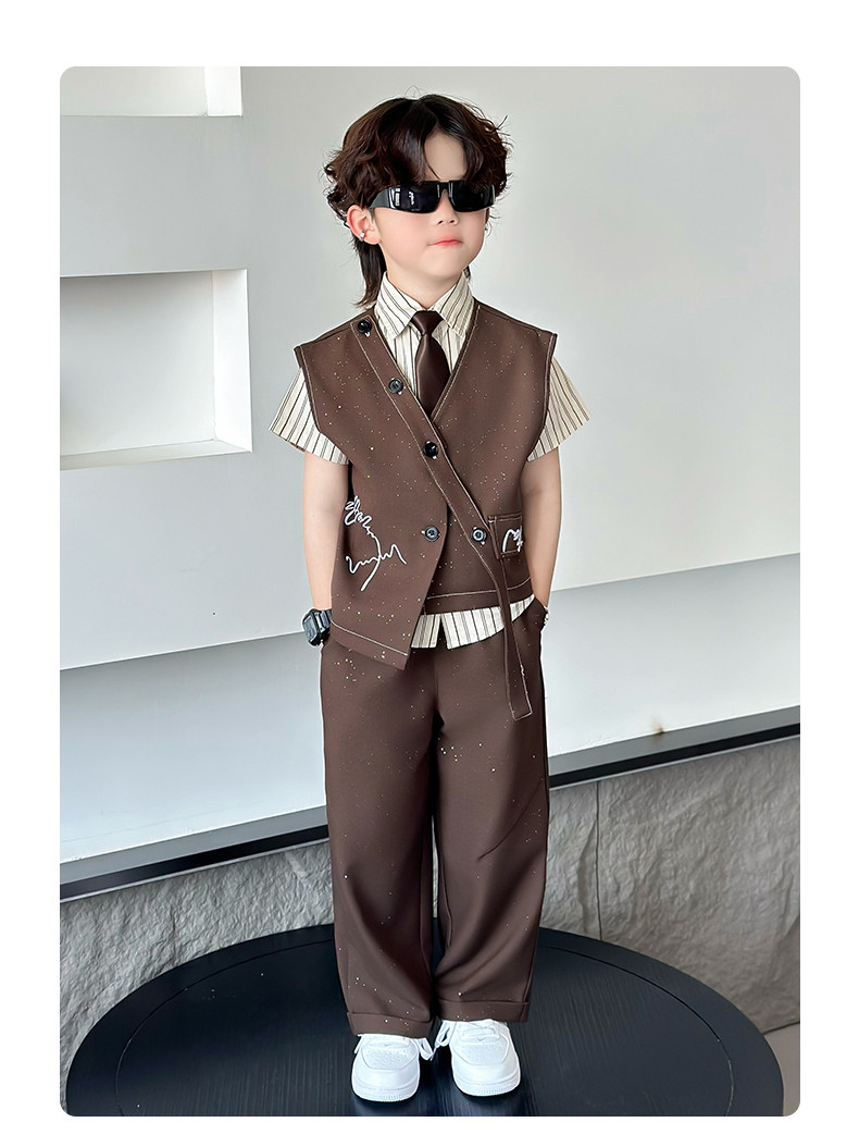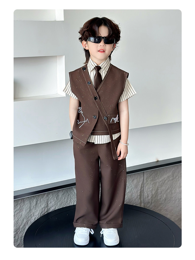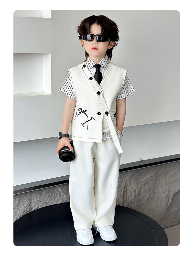 Летний блестящий детский комплект для мальчиков, пианино, наряд для музыкальных выступлений, костюм