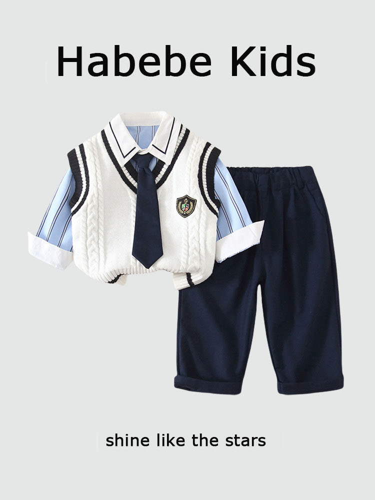 Детское демисезонное платье, жилет, рубашка, штаны, комплект, в западном стиле, 3 предмета