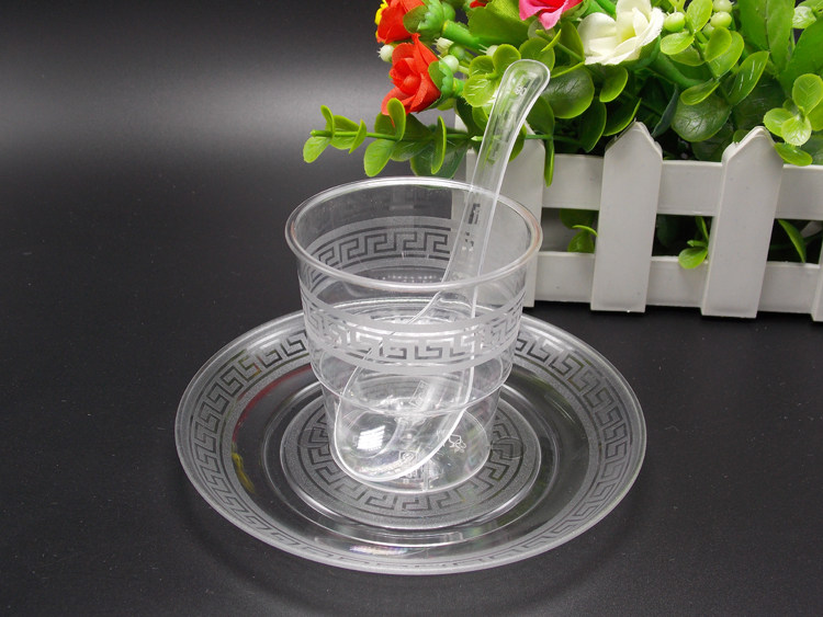 Зеленое кольцо одноразовое кристаллическое навязка/прозрачная пластиковая пластиковая пластиковая пластинка дыня фрукты кристаллическая блюда