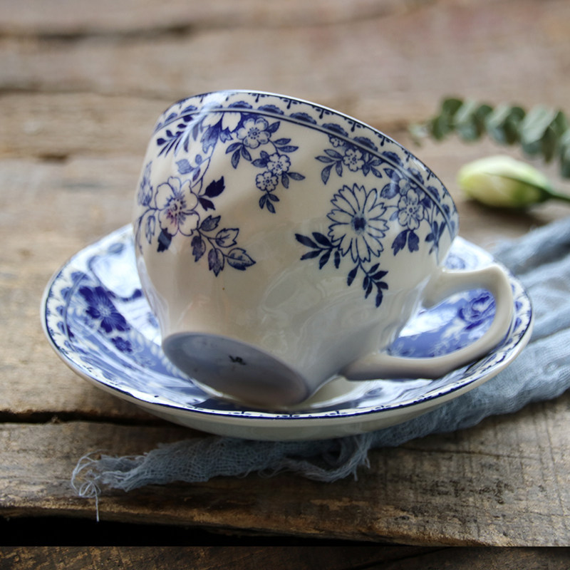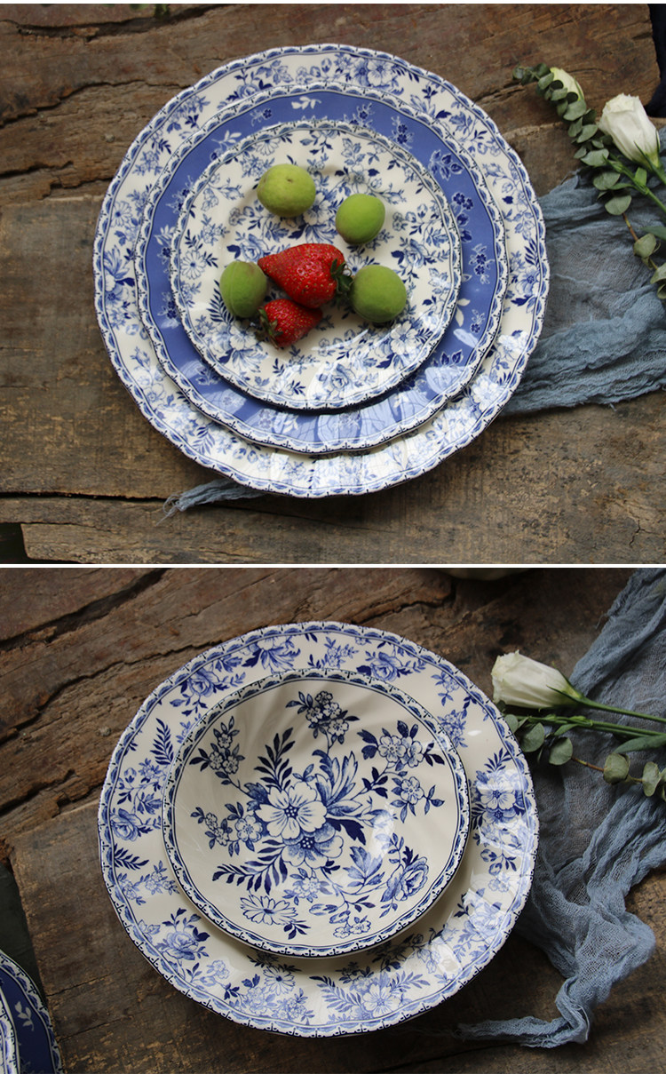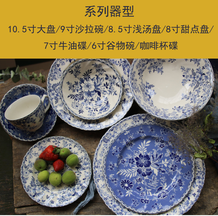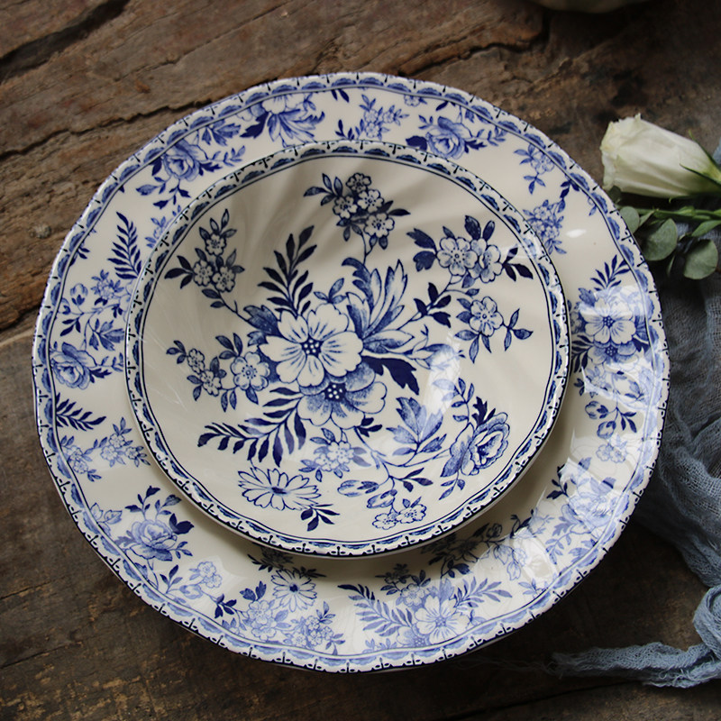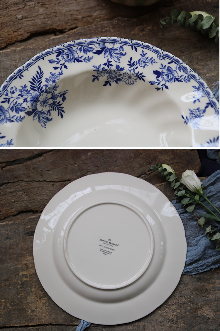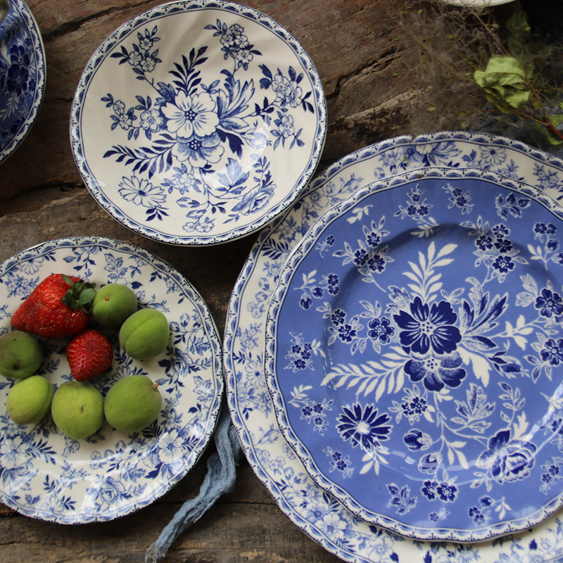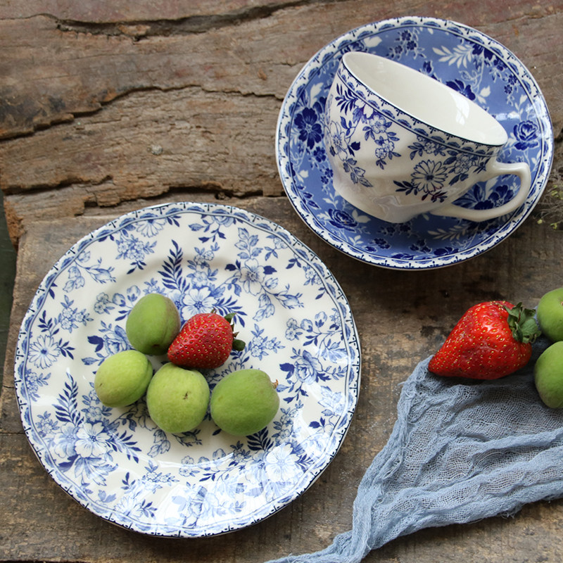 [Подглазурный цвет класса A] Внешняя торговля, оригинальный экспорт, британская классическая сине-белая серия Devon, большие и маленькие тарелки, миски, чашки и блюдца