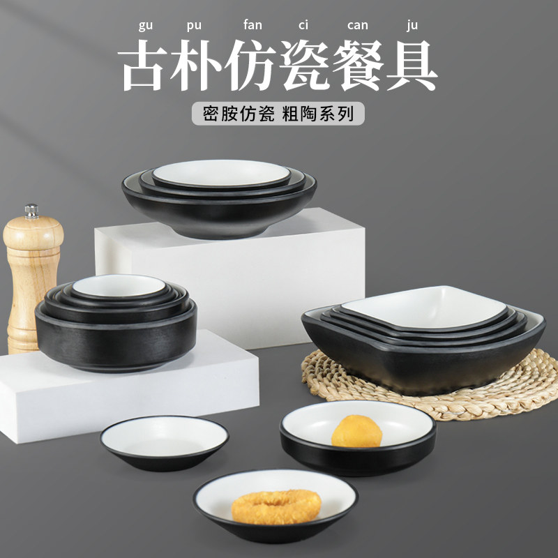 Kaibaayamine Korean маленькое блюдо блюдо блюдо имитация фарфорового ресторана горячий горшок приправляющий диск Flaspy Plastic Deep Plate Soup Plate Commercial
