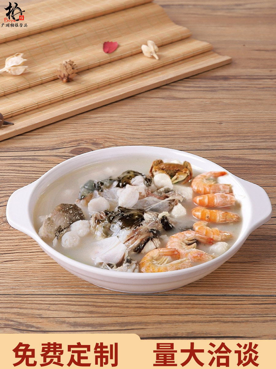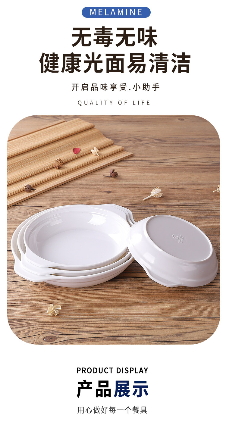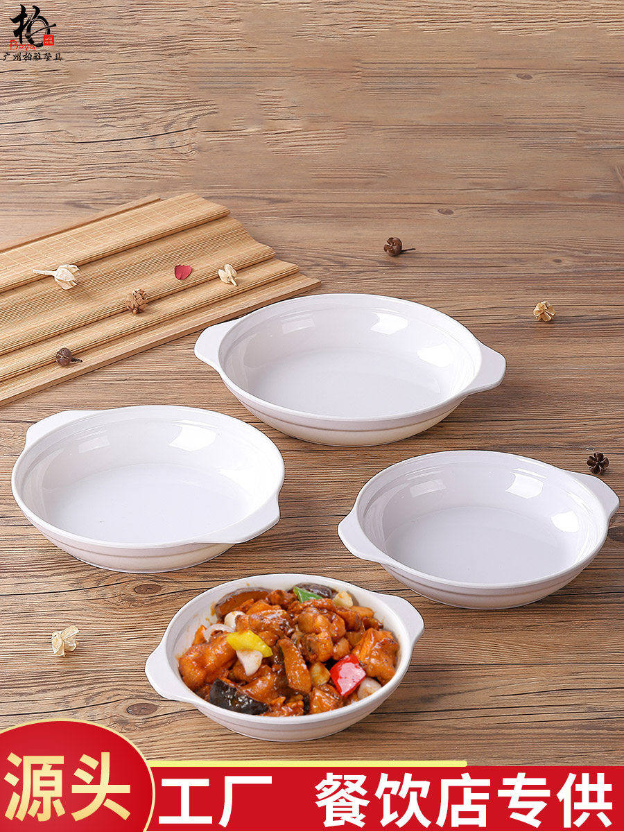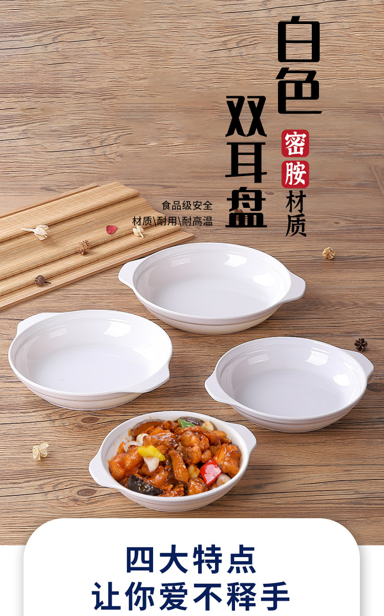 Белая могущественная пластина имитация фарфоровой посуды посуда пластиковая диск с двумя упущенными.
