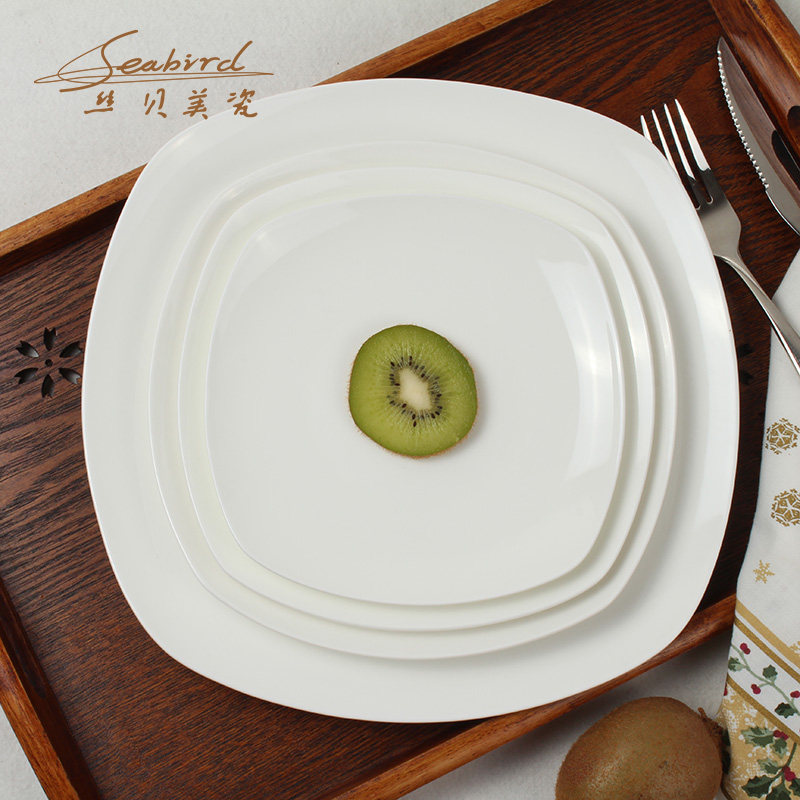 Чистый белый квадратный фарфоровый фарфоровой посуда Керамическая тарелка, стейк, западный обеденный диск диск торт