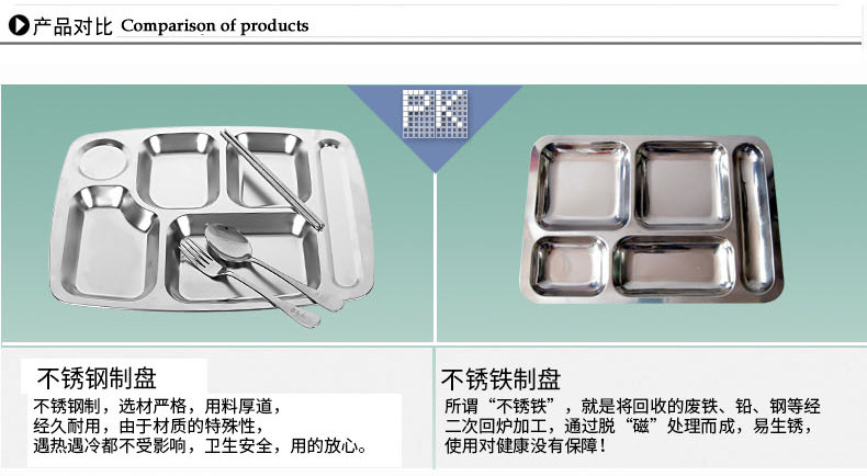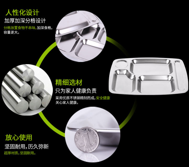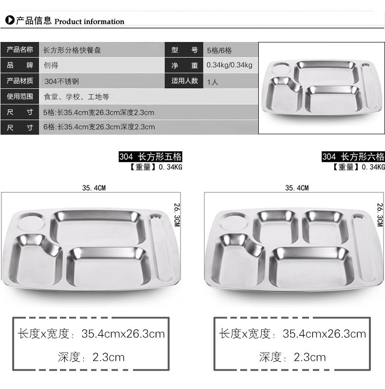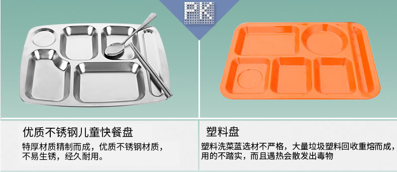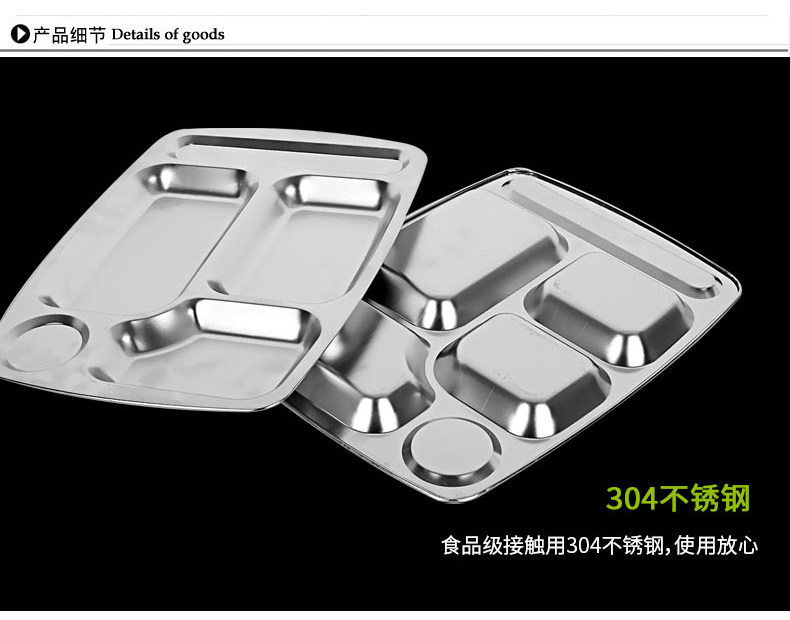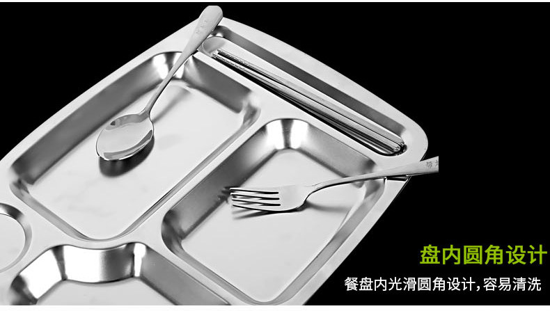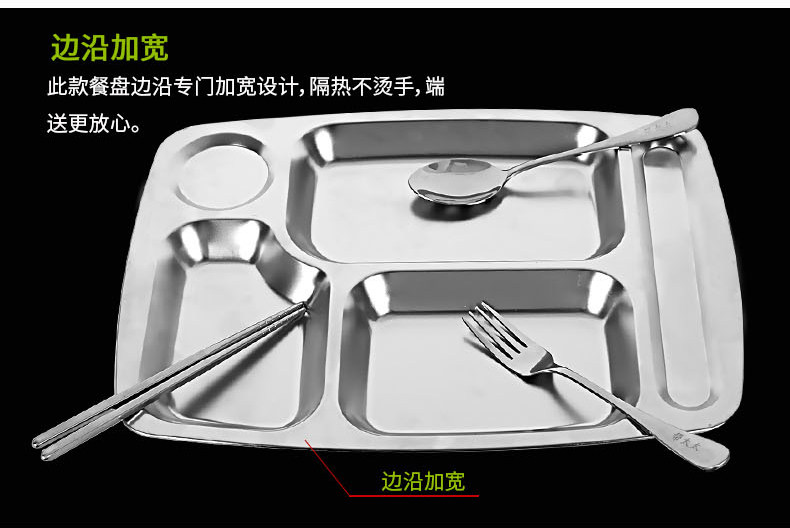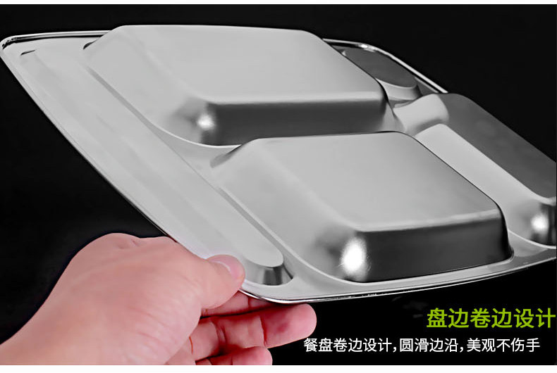 Прямоугольная обеденная тарелка из нержавеющей стали для школьников и студентов, увеличенная толщина
