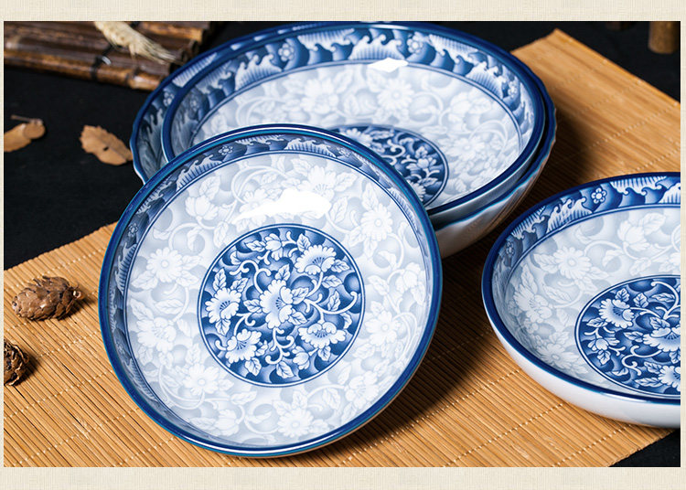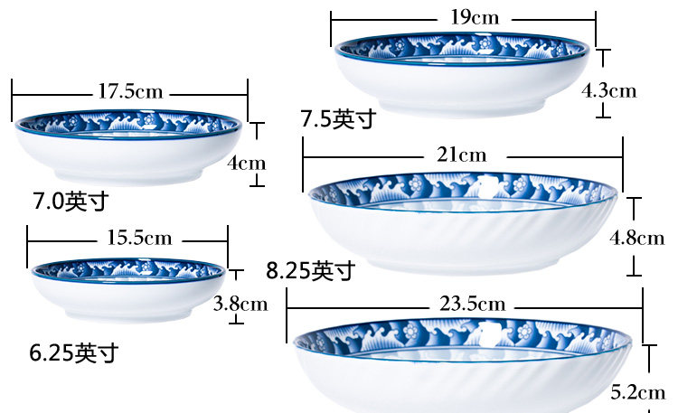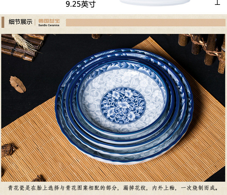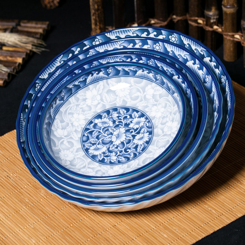 参宝 Керамическая синяя и белая фарфоровая круглая квадратная овощная пластина для пищи рис Глубокая тарелка