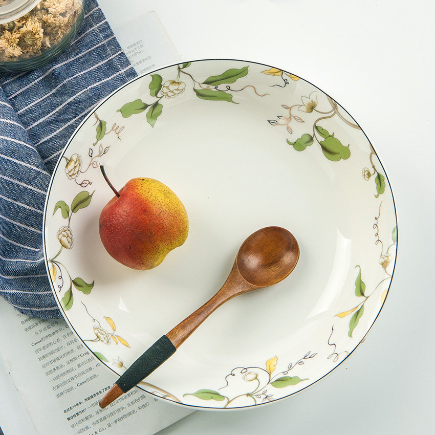 Простота дома европейская стиль 9 -вдворные керамические блюда Большой фарфоровой фарфоровой тарелка Tangshan 9 -на дюймовый суп -тарелка завтрак завтрак завтрак завтрак на завтрак