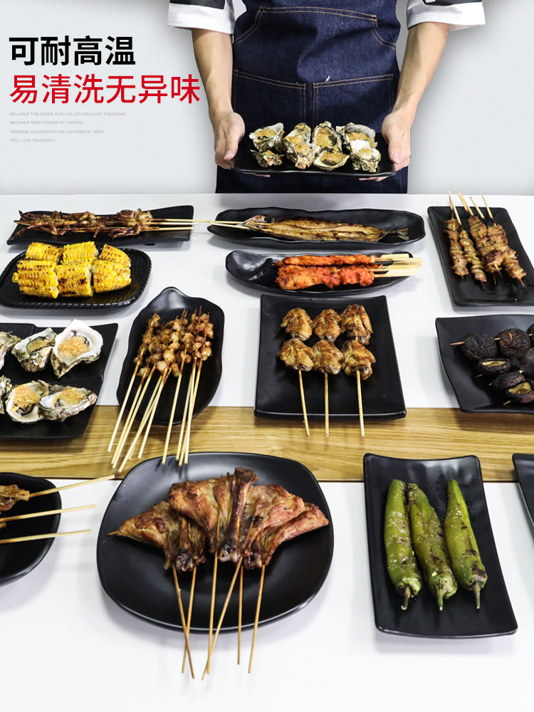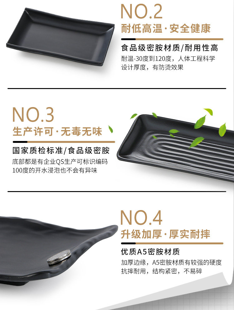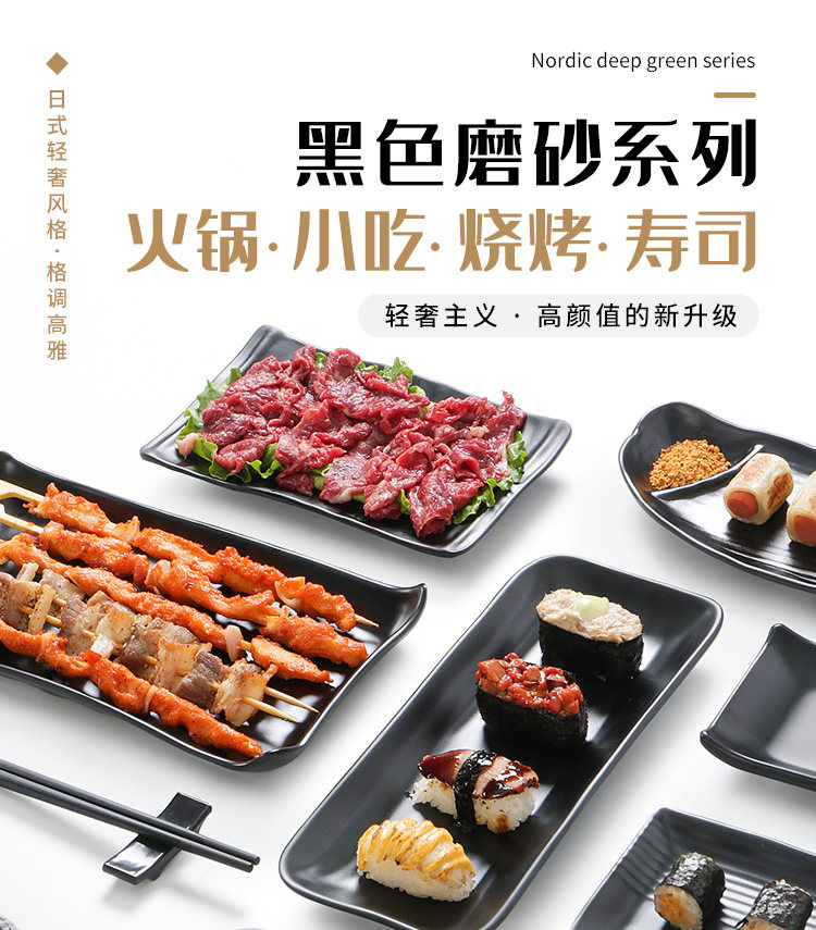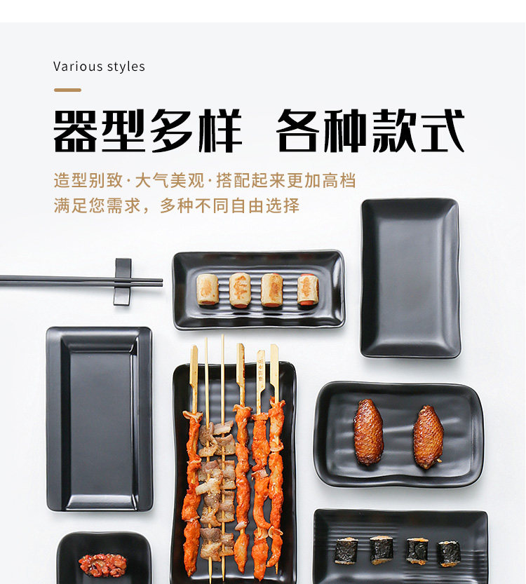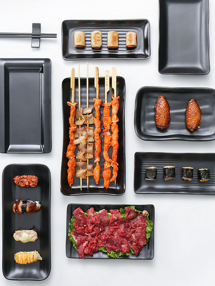 Бантамин имитация фарфорового блюда из горячего горшка Блюдо для барбекю в ресторане холодное блюдо коммерческое пластиковое прямоугольное черное японское барбекю