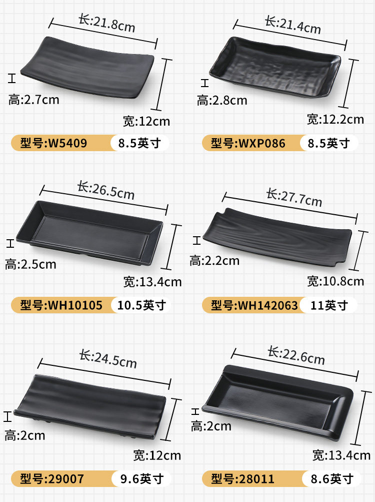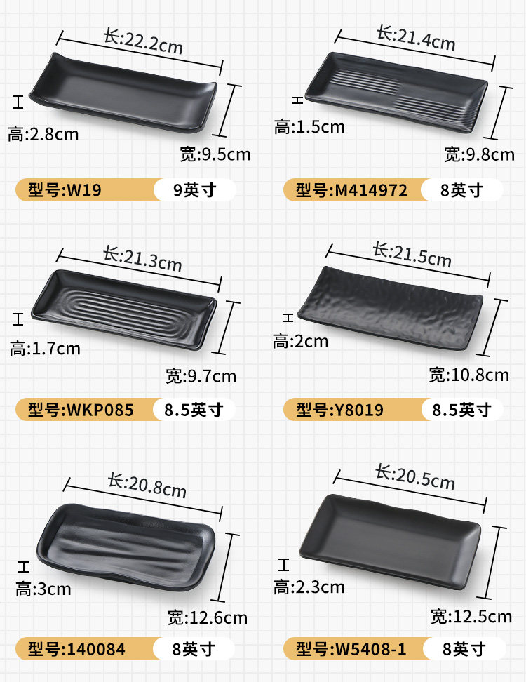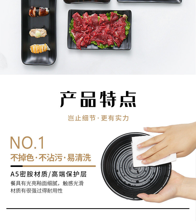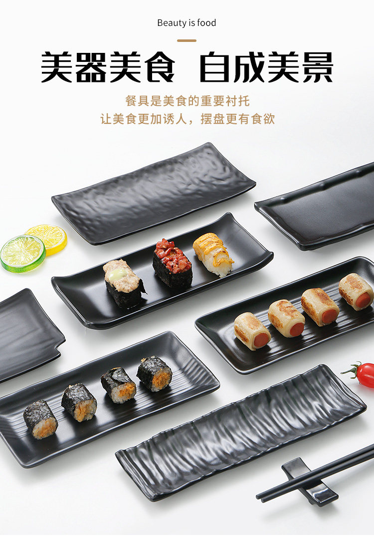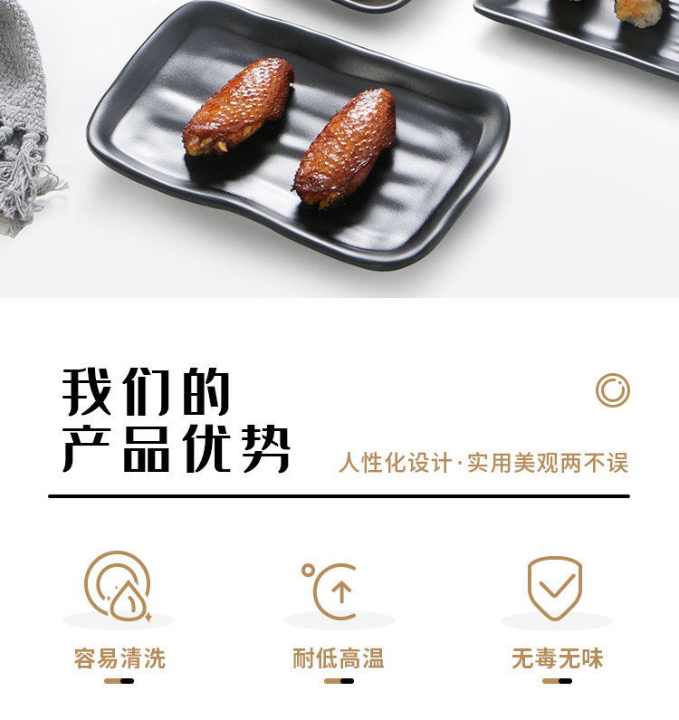 Бантамин имитация фарфорового блюда из горячего горшка Блюдо для барбекю в ресторане холодное блюдо коммерческое пластиковое прямоугольное черное японское барбекю
