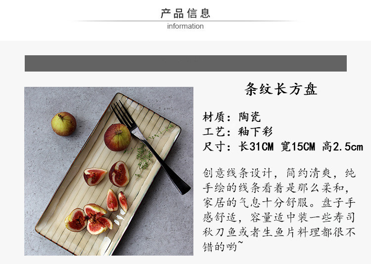 Ретро -линия длинная тарелка керамическая суши -тарелка рыбная тарелка творческая западная десертная тарелка