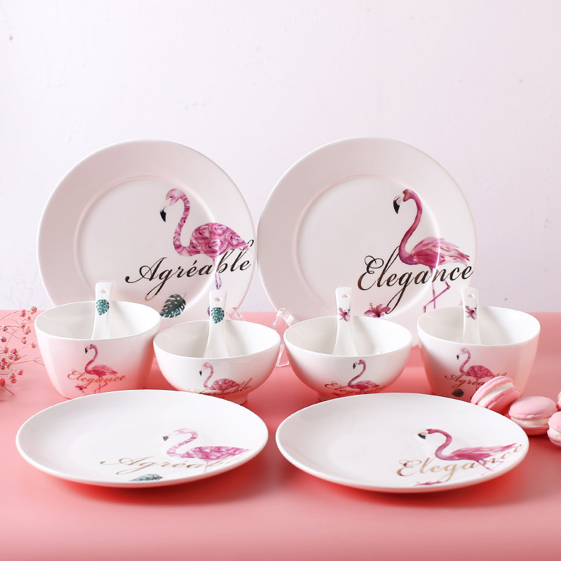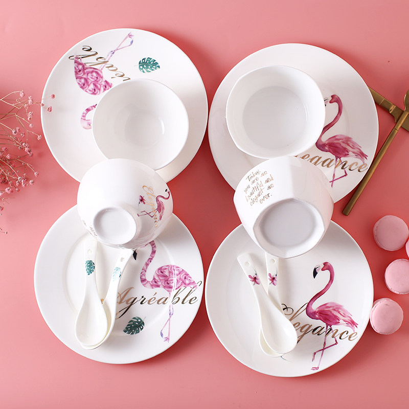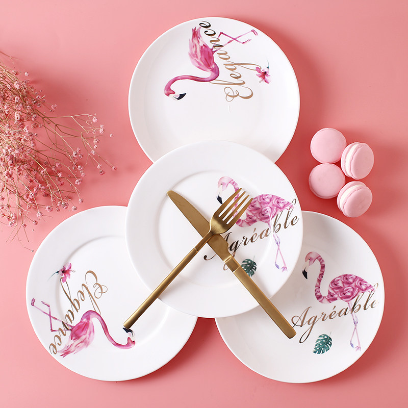 Керамическая посуда, комплект, креативная розовая обеденная тарелка, простой и элегантный дизайн, широкая цветовая палитра