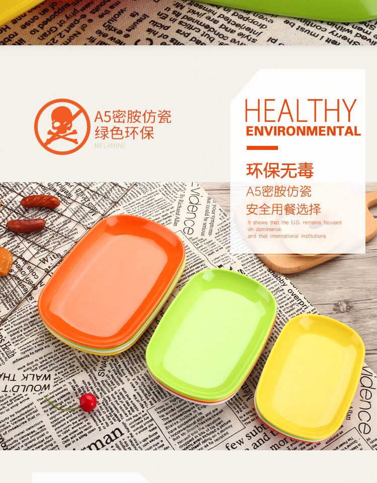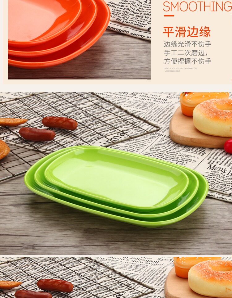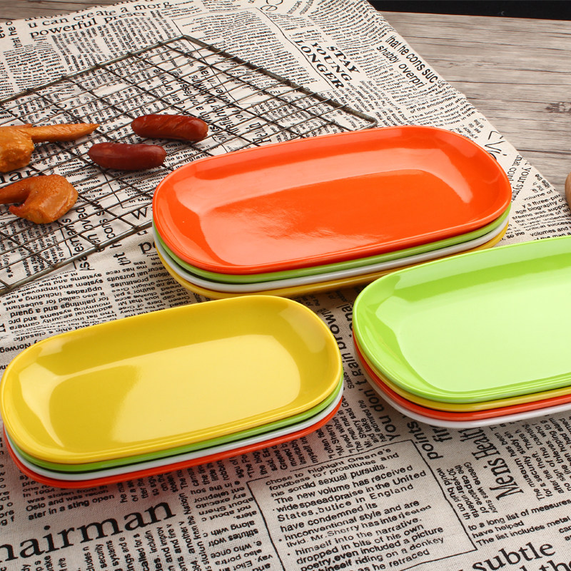 Цвет -мимаминовая имитационная фарфоровая пластина прямоугольная диска Hotpot Пластиковая посуда кишечная пластина маленькое блюдо коммерческое овальное