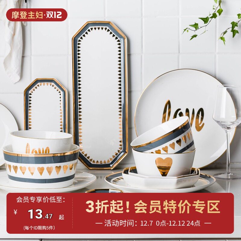摩登主妇 Креативная посуда серия любви керамика домохозяйства большая длинная тарелка милая салатная миска с фруктами