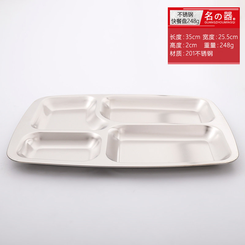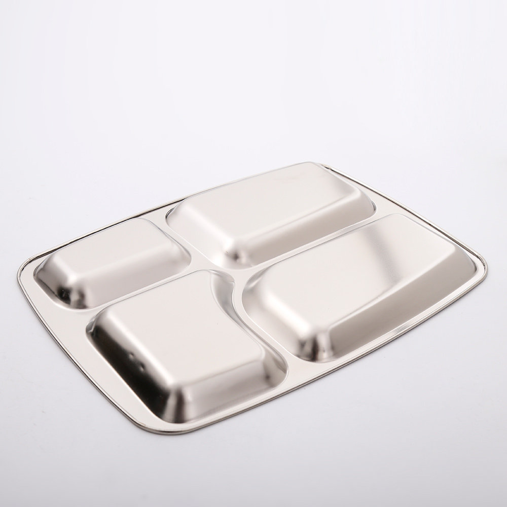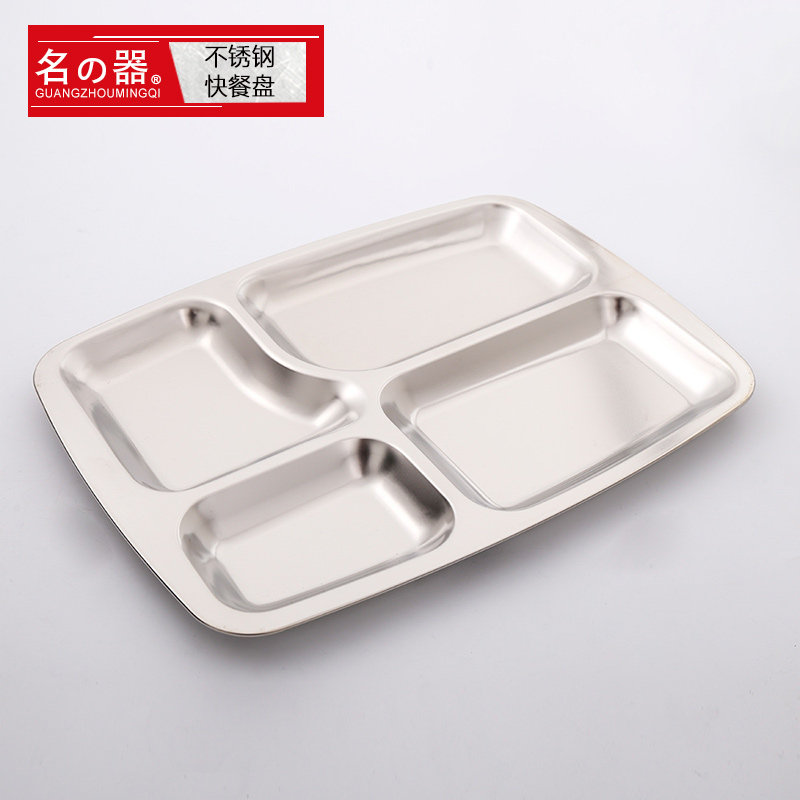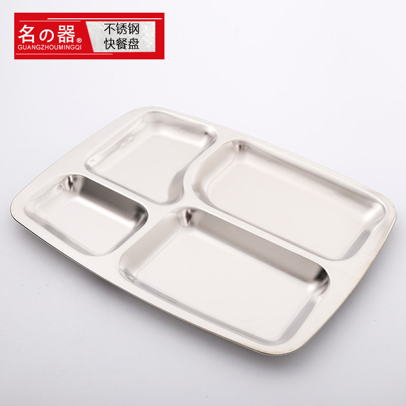 Большая прямоугольная обеденная тарелка из нержавеющей стали для коммерческого использования для школьников и студентов