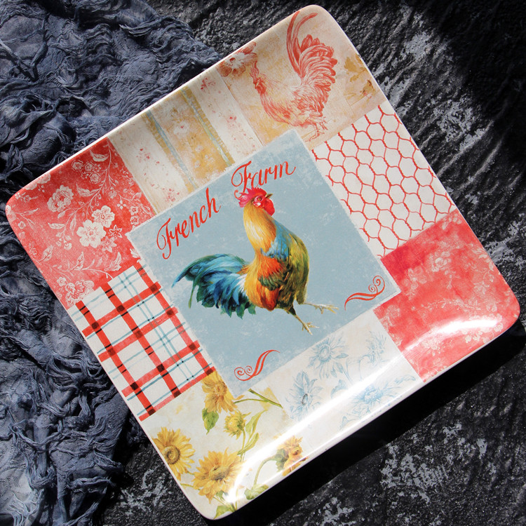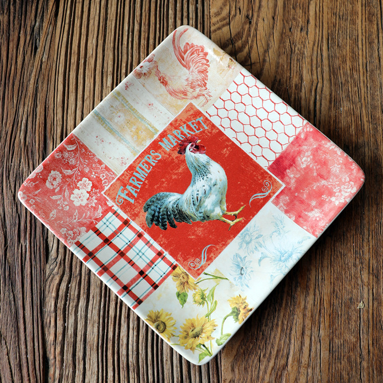 Распродажа, специальная цена, 12-дюймовая керамическая посуда в американском стиле, квадратная тарелка с рисунком петуха, тарелка для клецок, тарелка для пасты