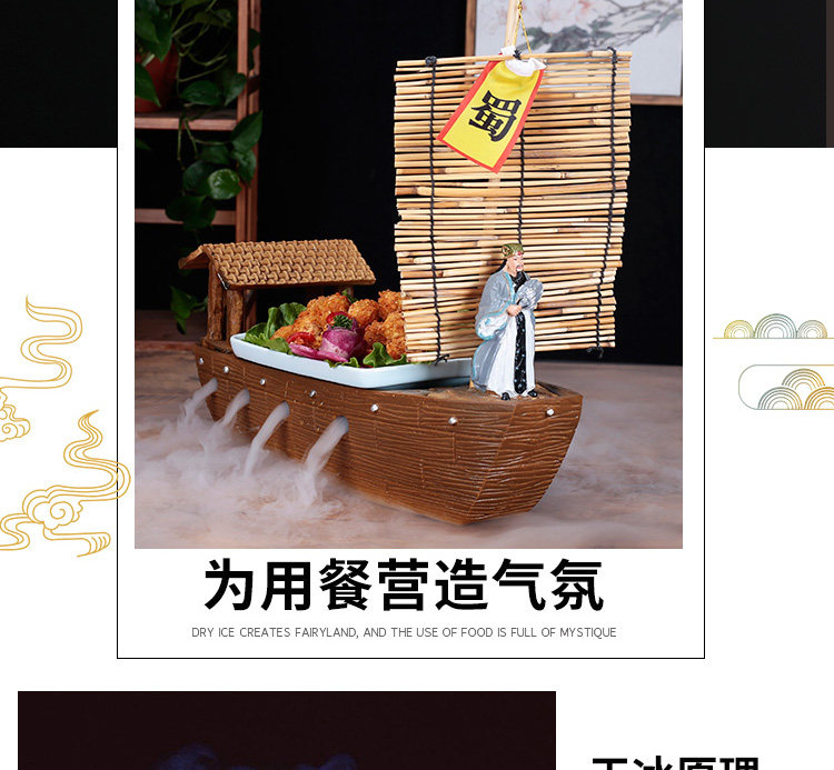 千喜 Отель Dry Ice Plate Creative Zhuge Liang's Соломенная лодка заимствование стрелы Mingzhang Специальное блюдо сашими
