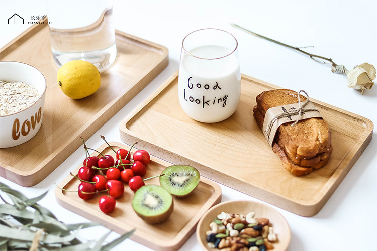 Японская прямоугольная чайная чашка для домашнего использования, обеденная тарелка из натурального дерева